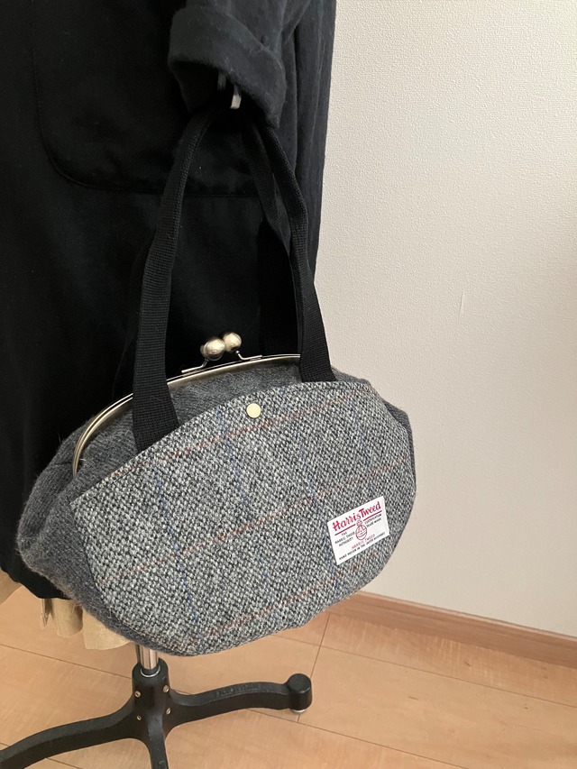 ハリスツイードがま口ハンドバッグ(グレー)