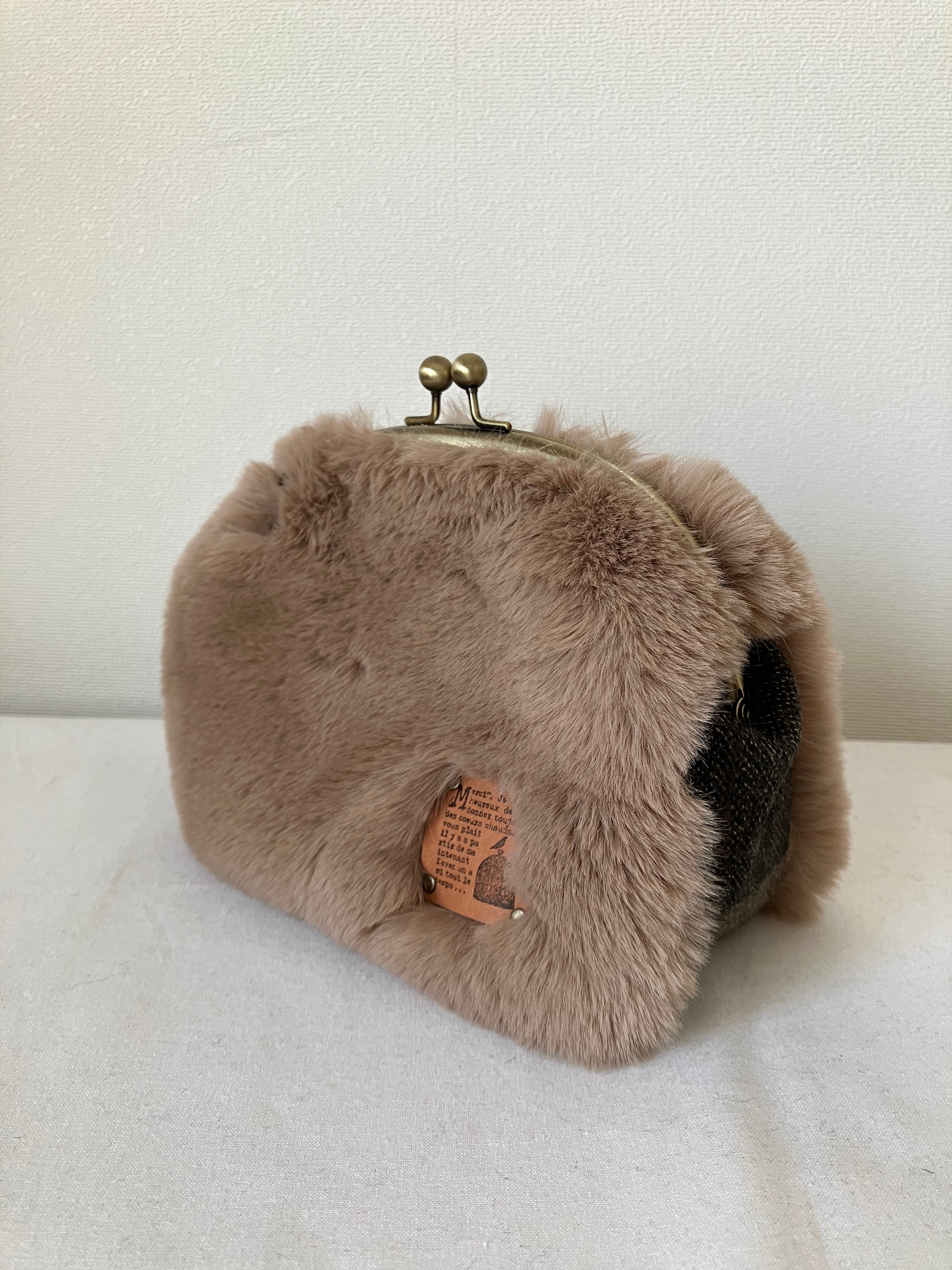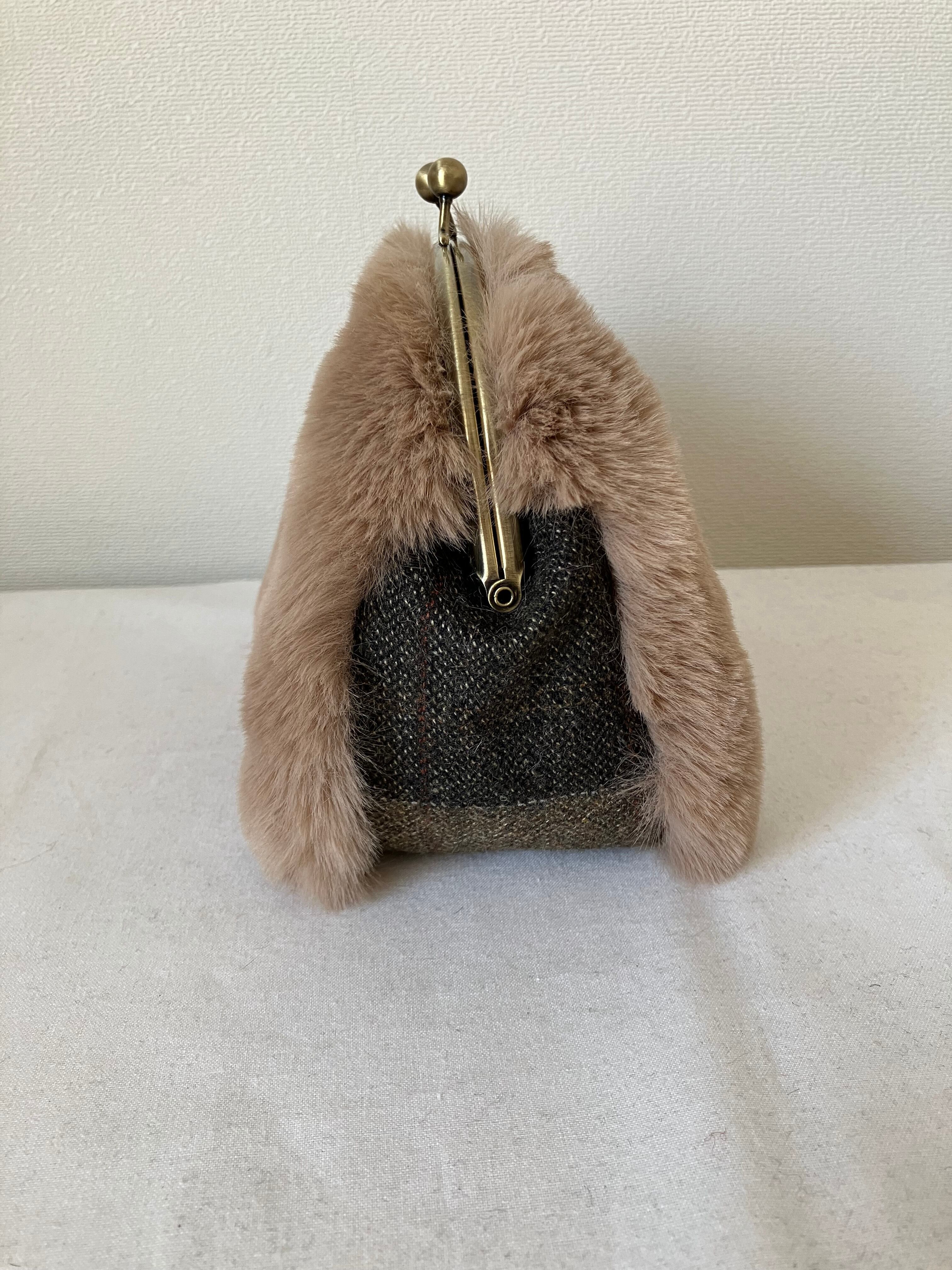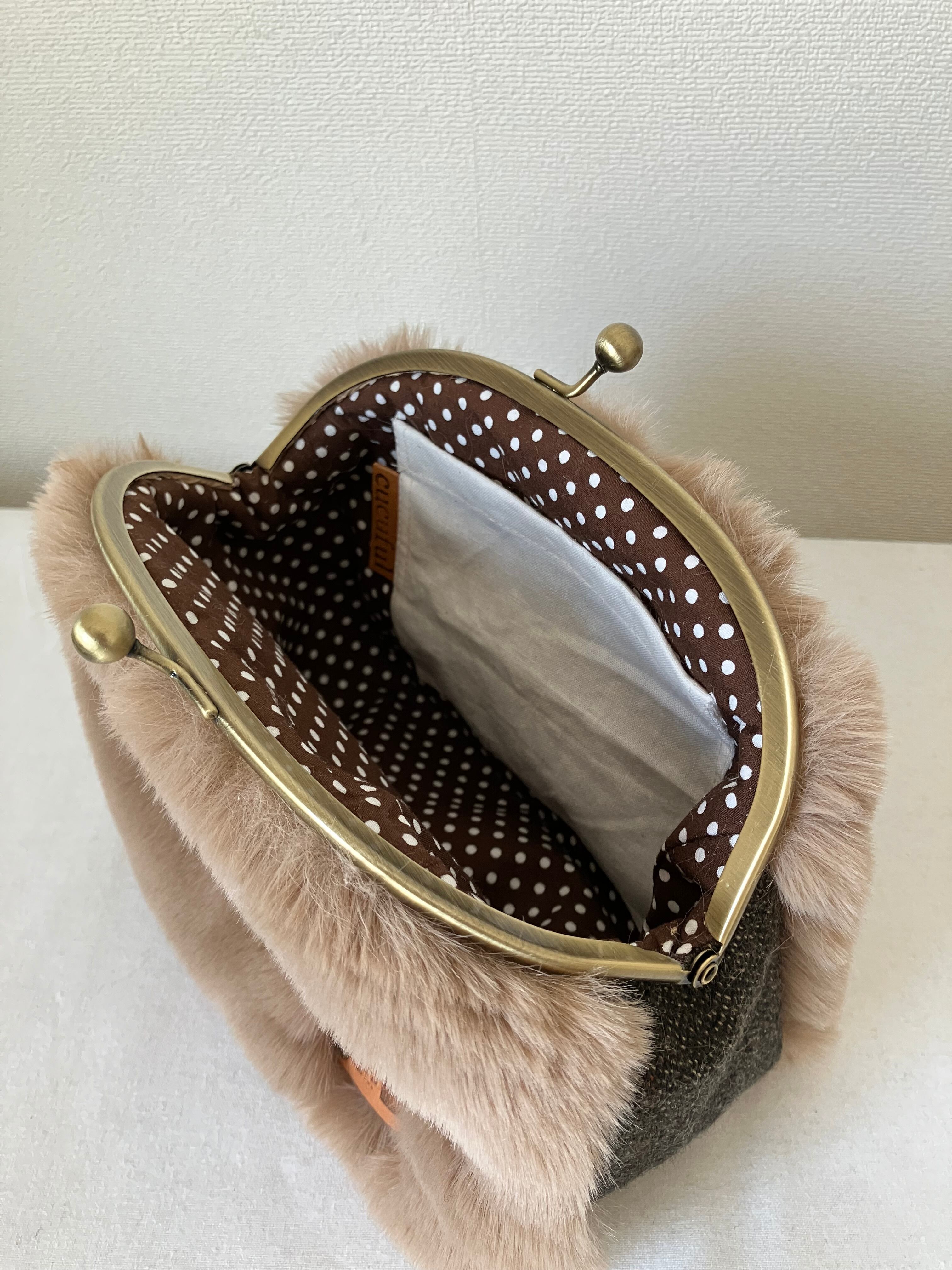 ■ボリュームのあるファーを使ってがま口バッグを作りました。マチにはブラウン系のウール生地を使用しています。