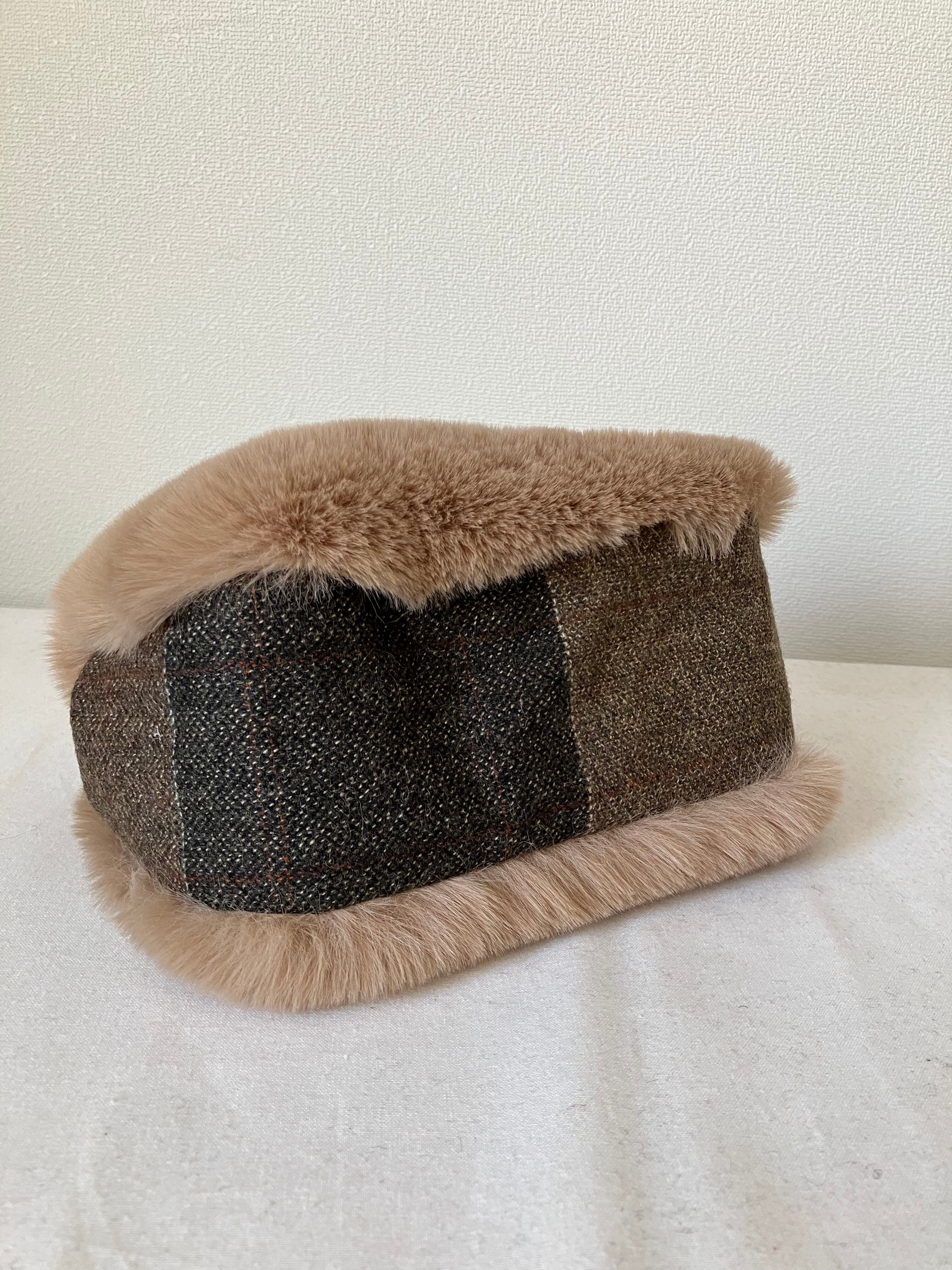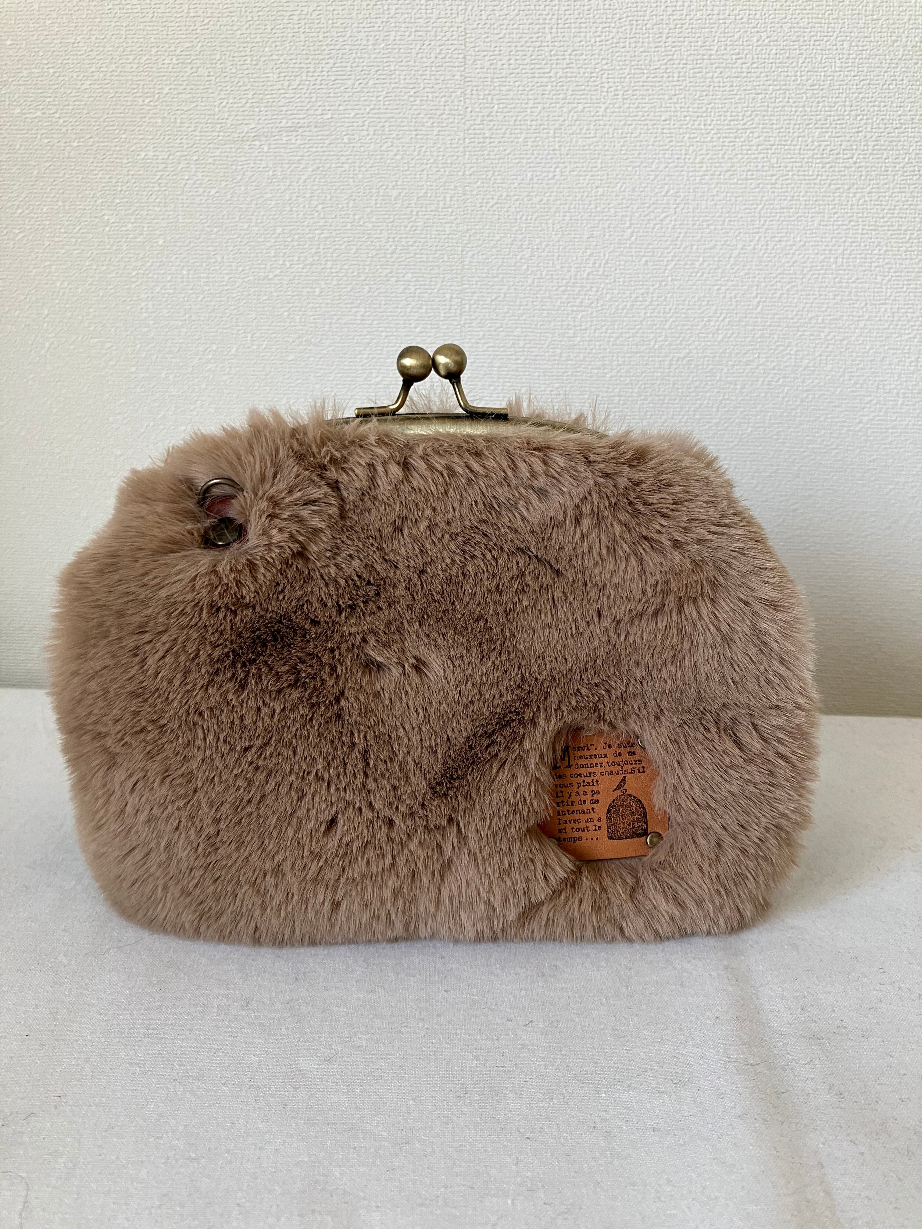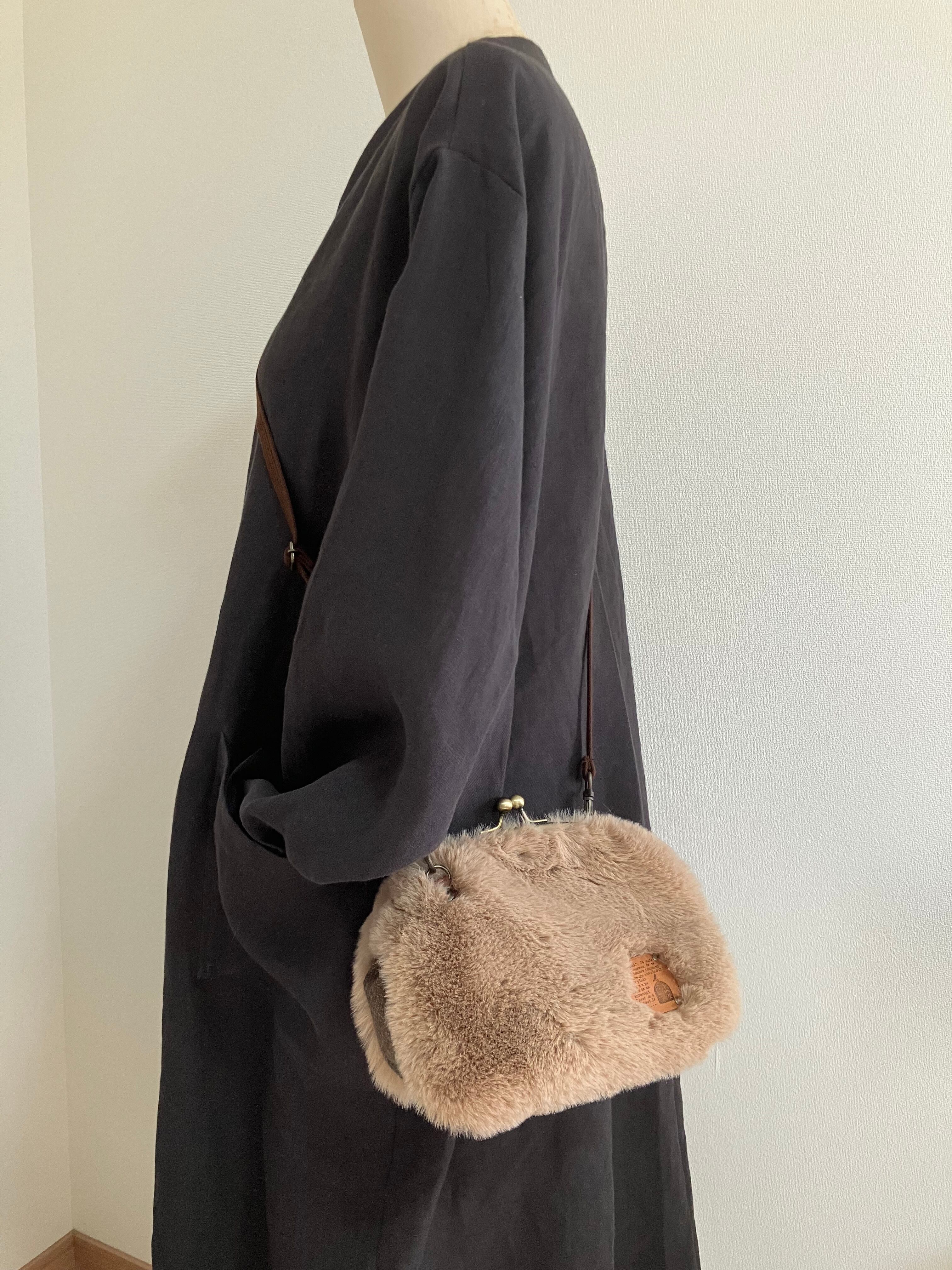 ■ボリュームのあるファーを使ってがま口バッグを作りました。マチにはブラウン系のウール生地を使用しています。