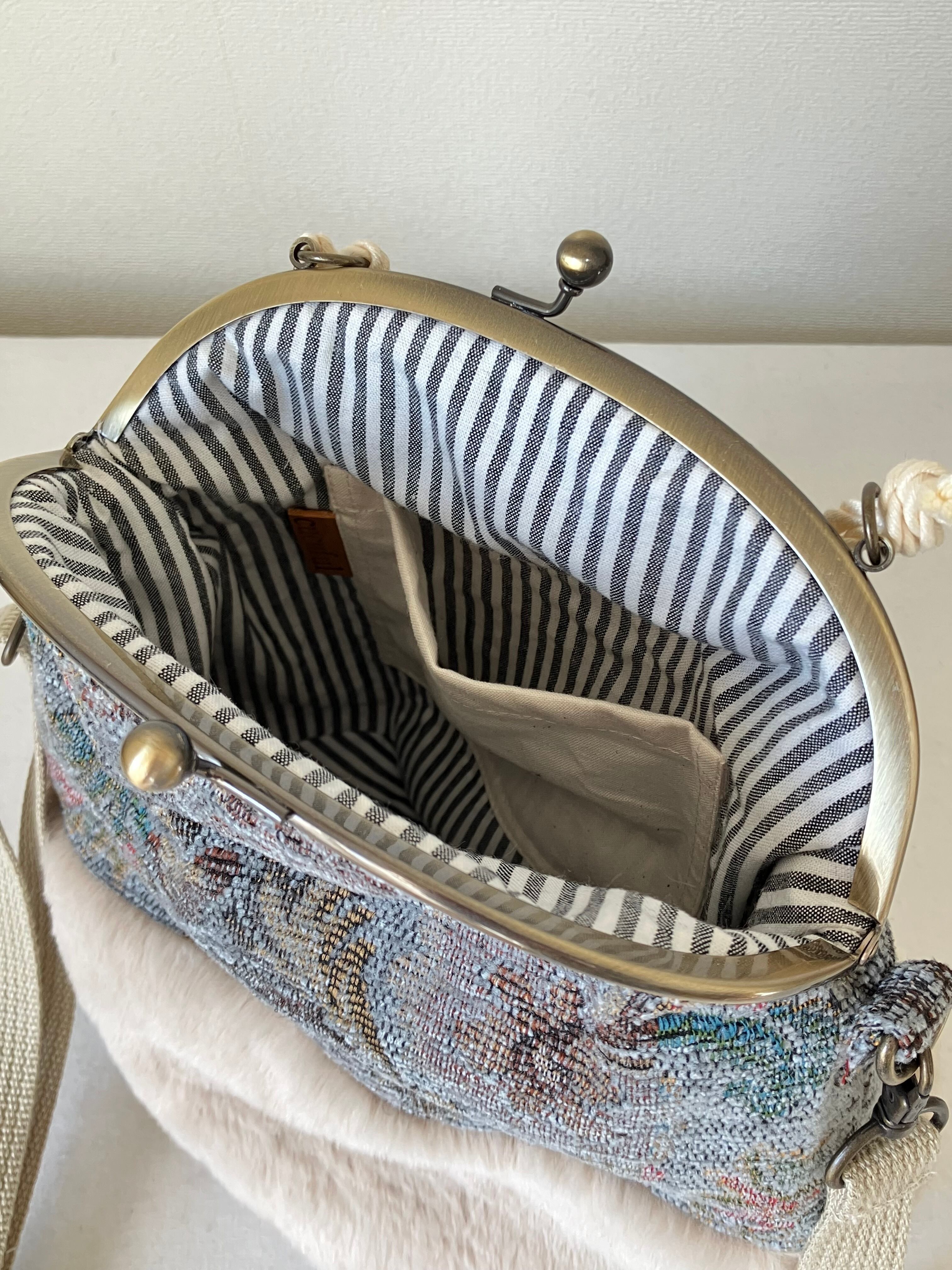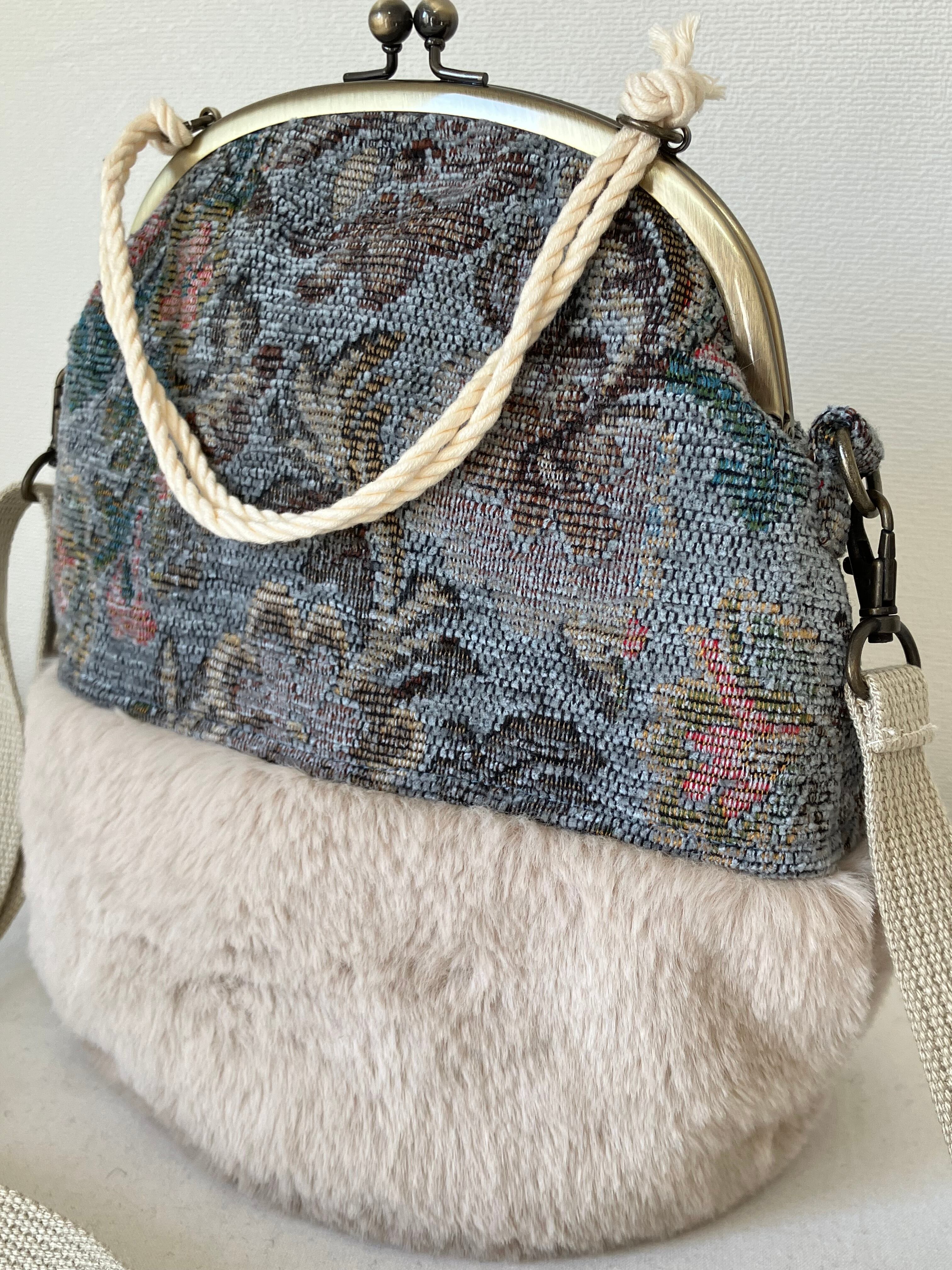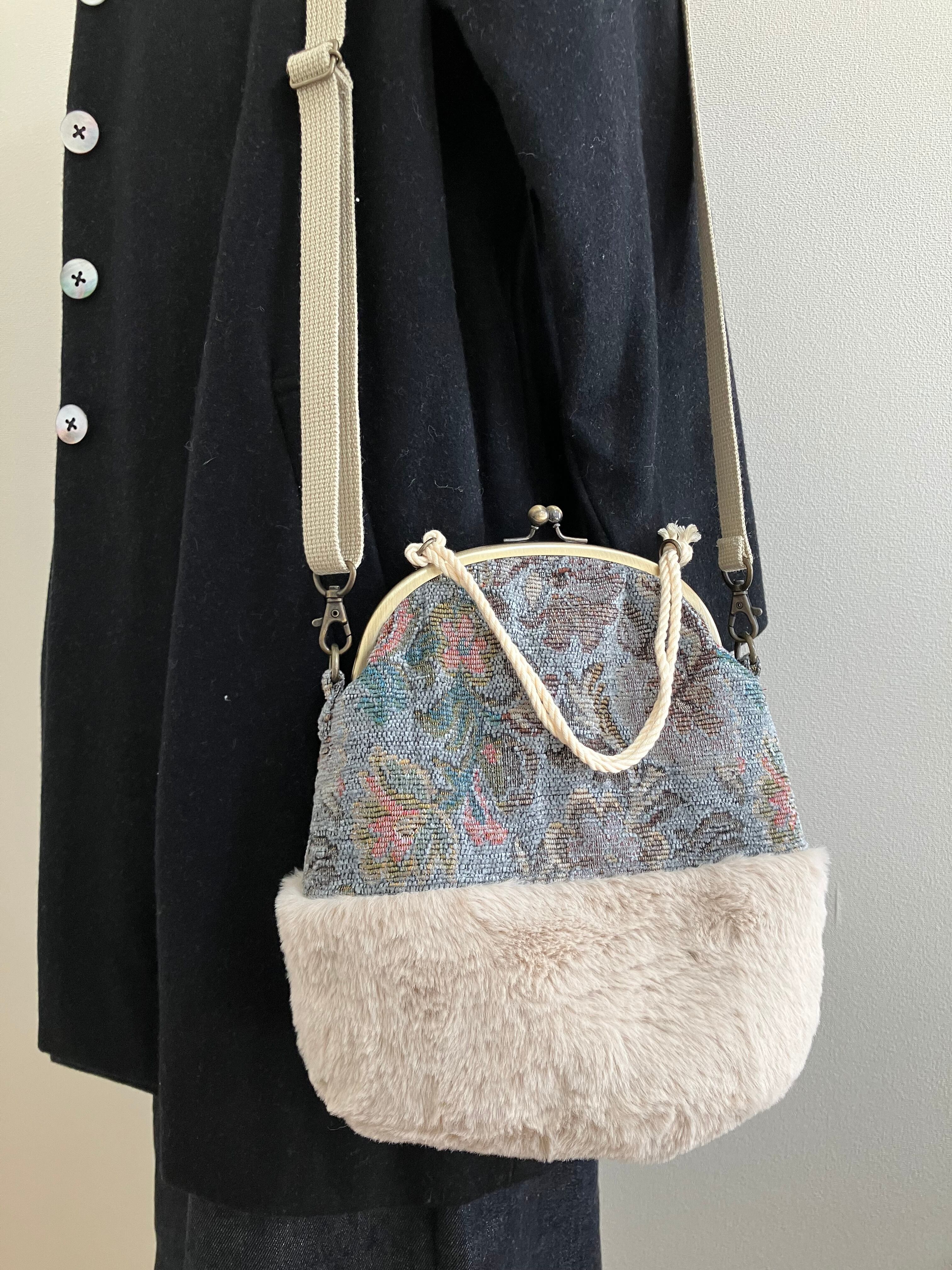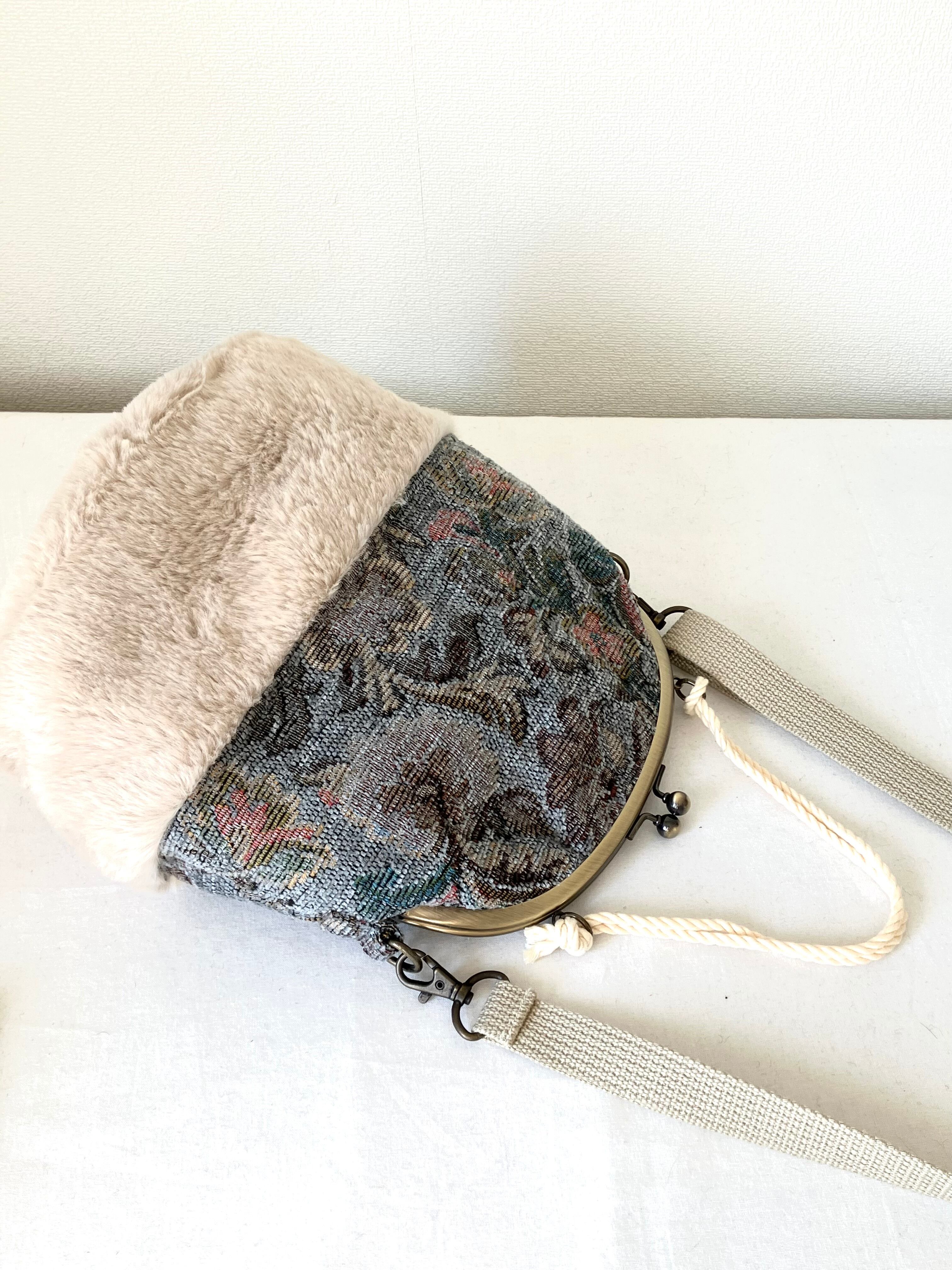 バケツ型がま口バッグ(S)ゴブラン×ファー