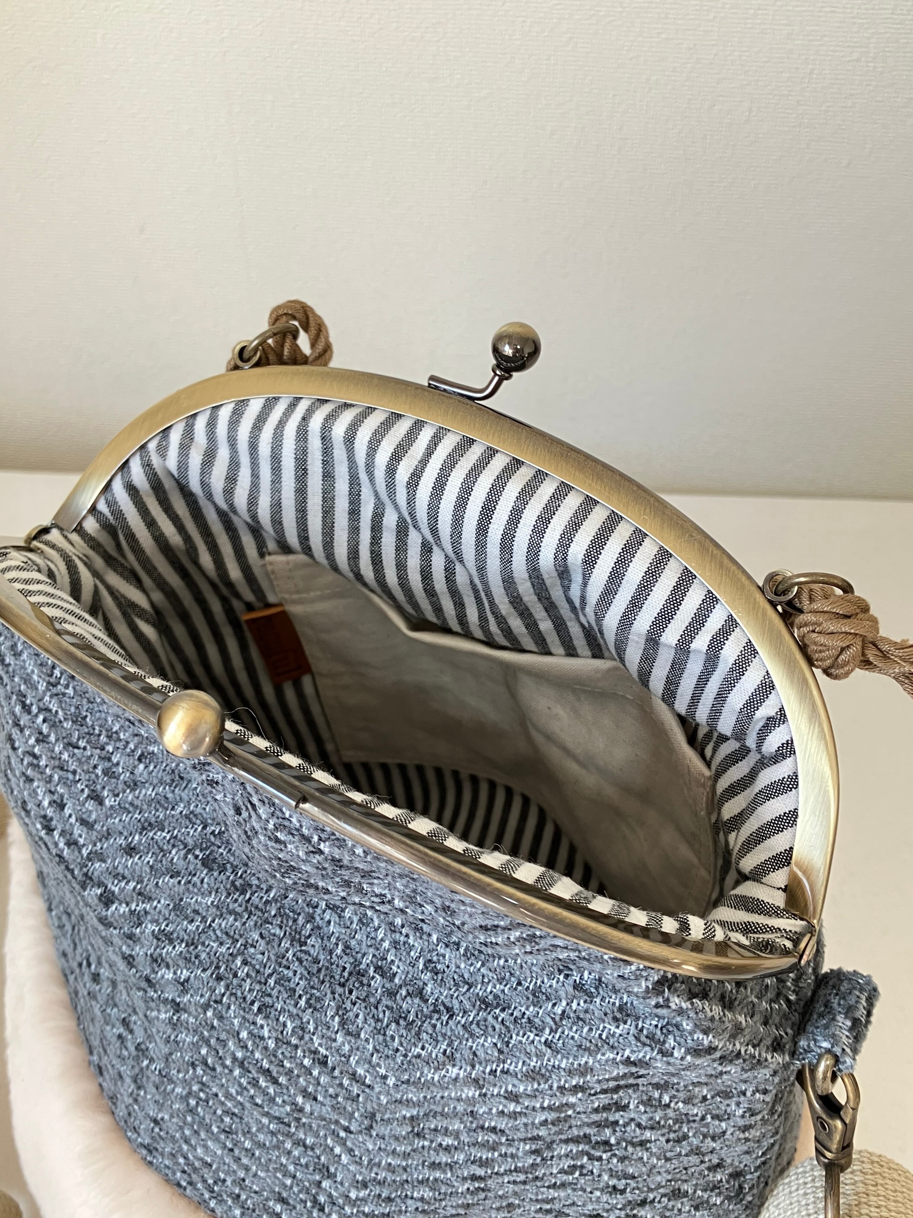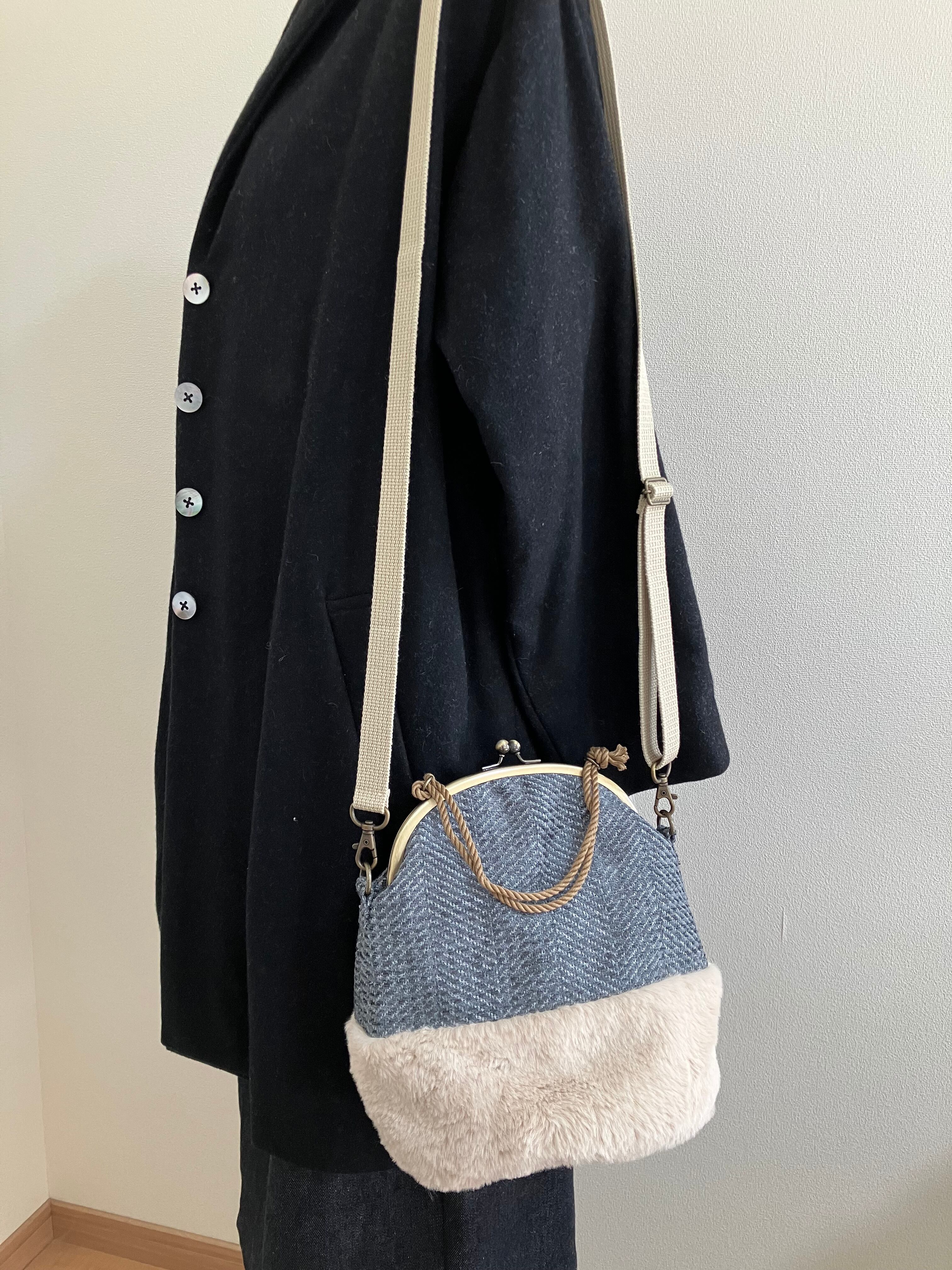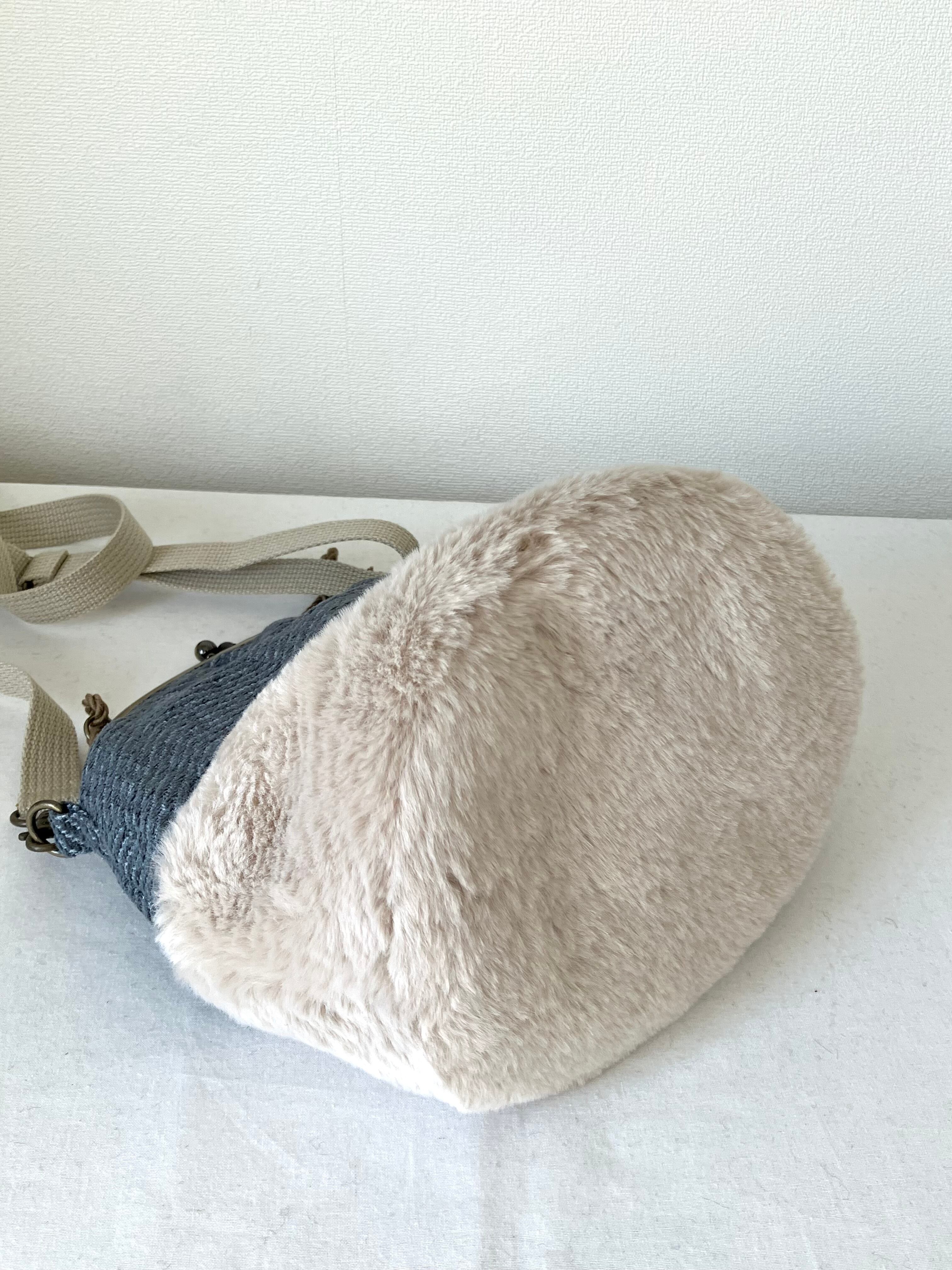 バケツ型がま口バッグ(S)ジャガード×ファー
