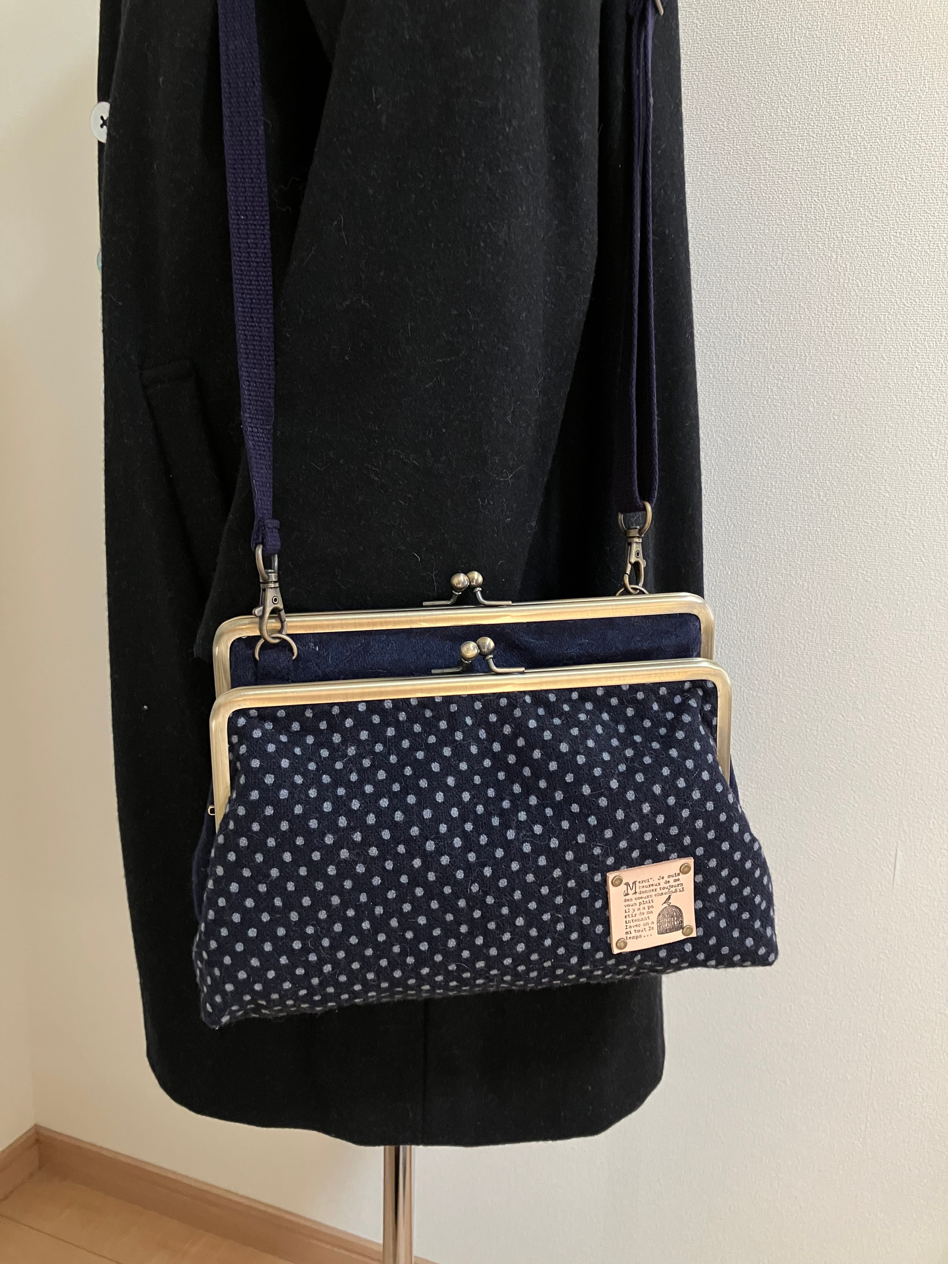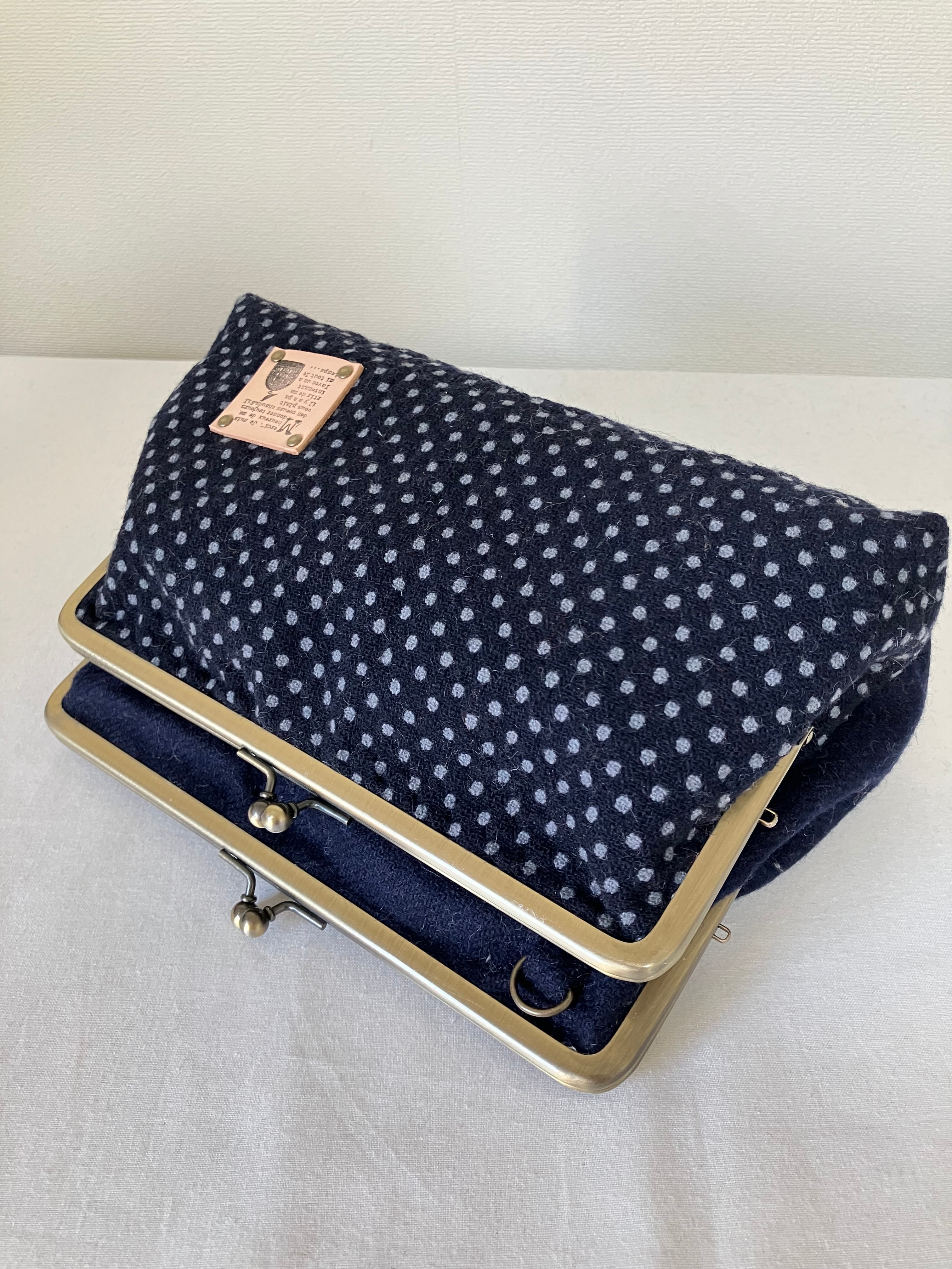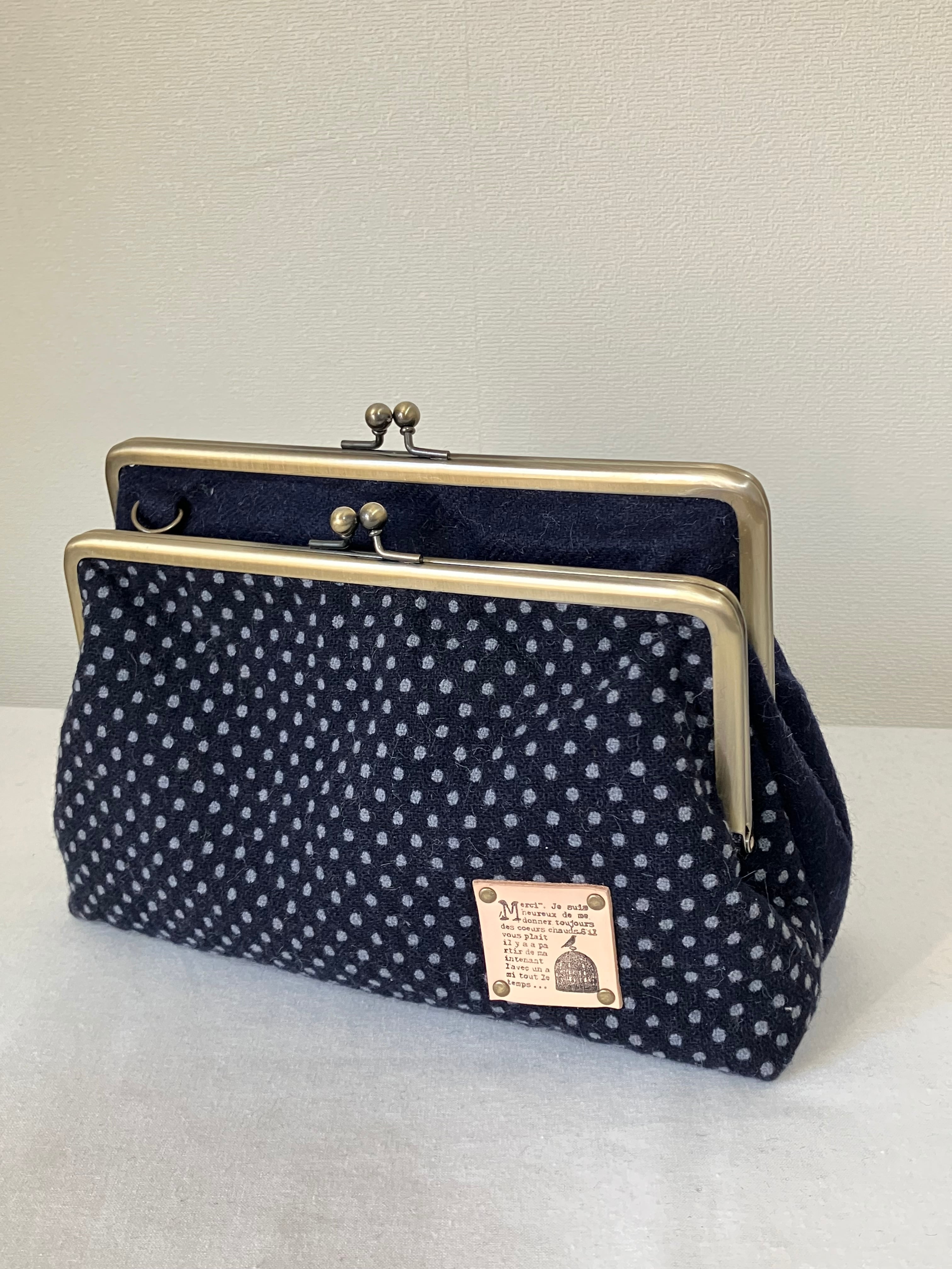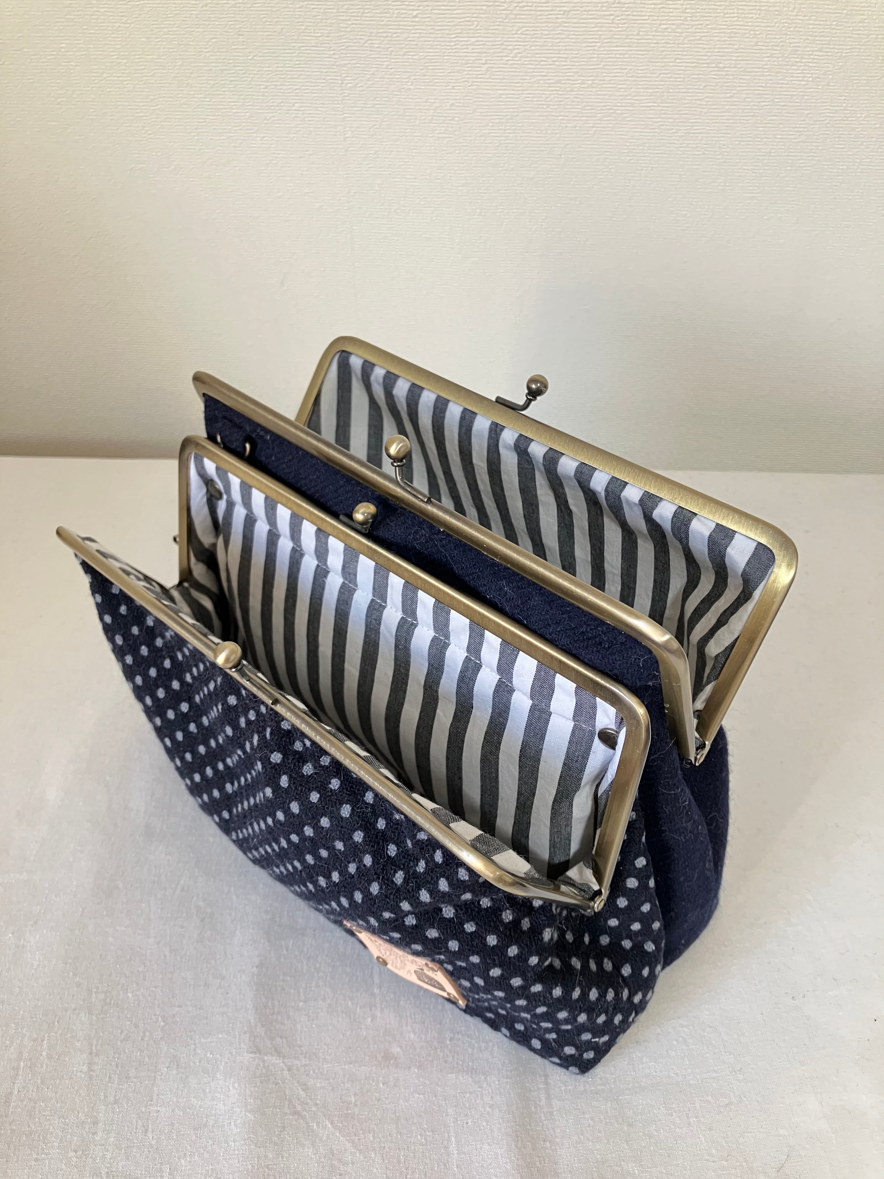 ダブルがま口バッグMサイズ(ネイビードット) 持ち手別売り