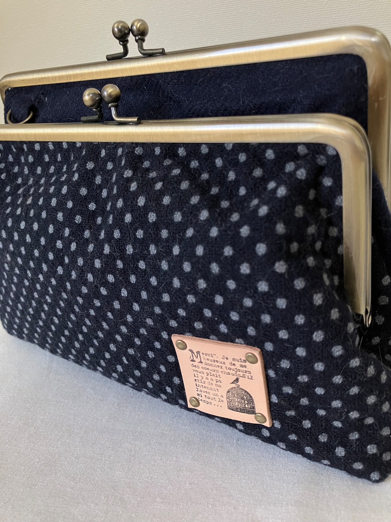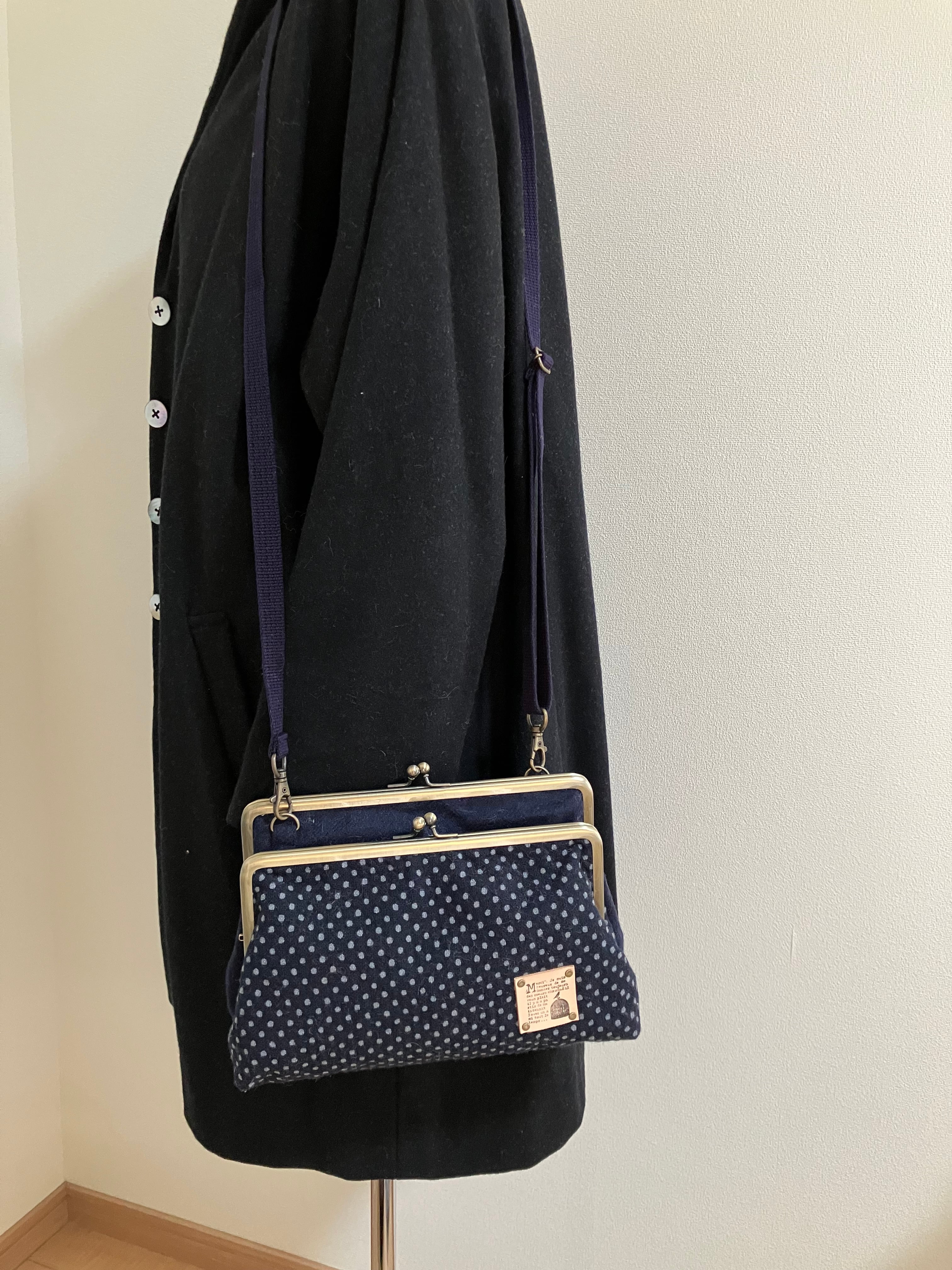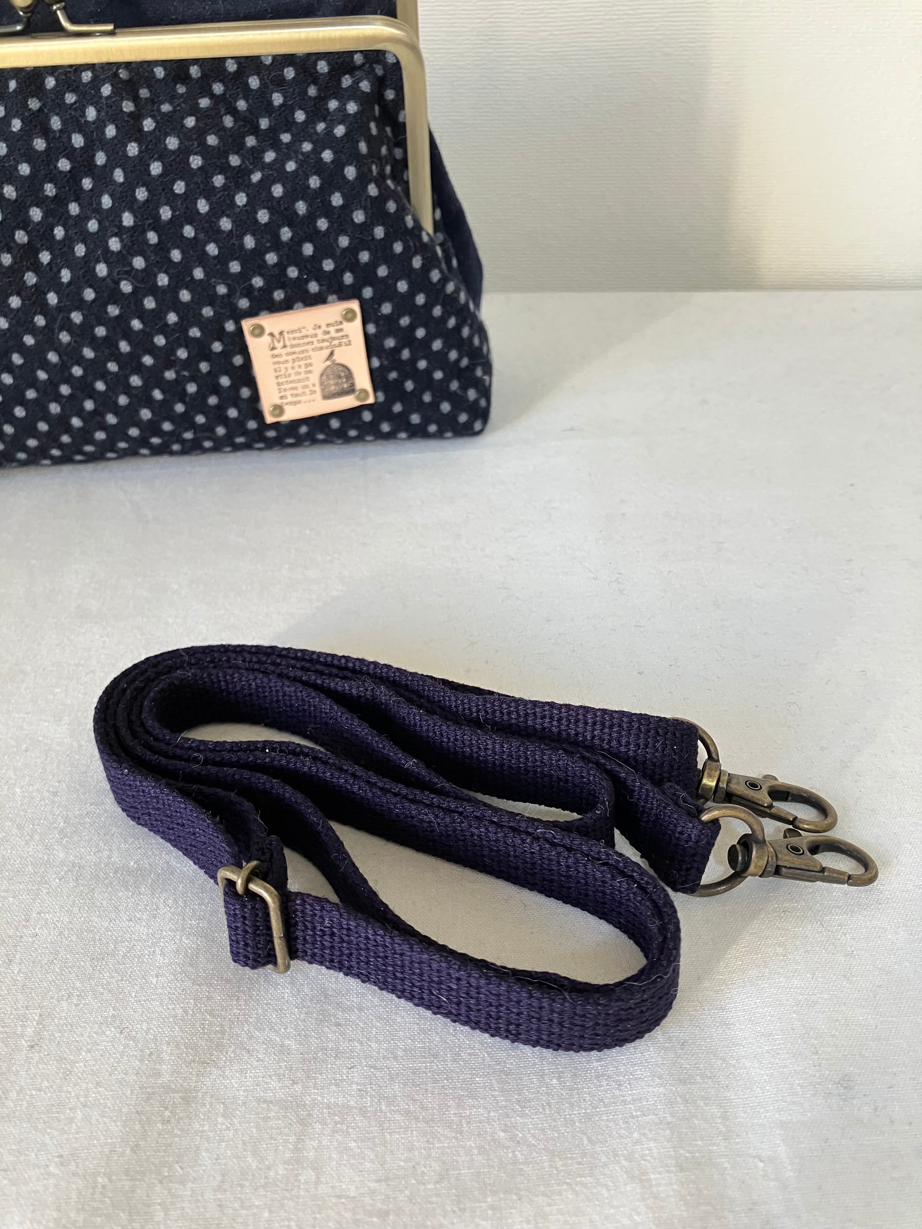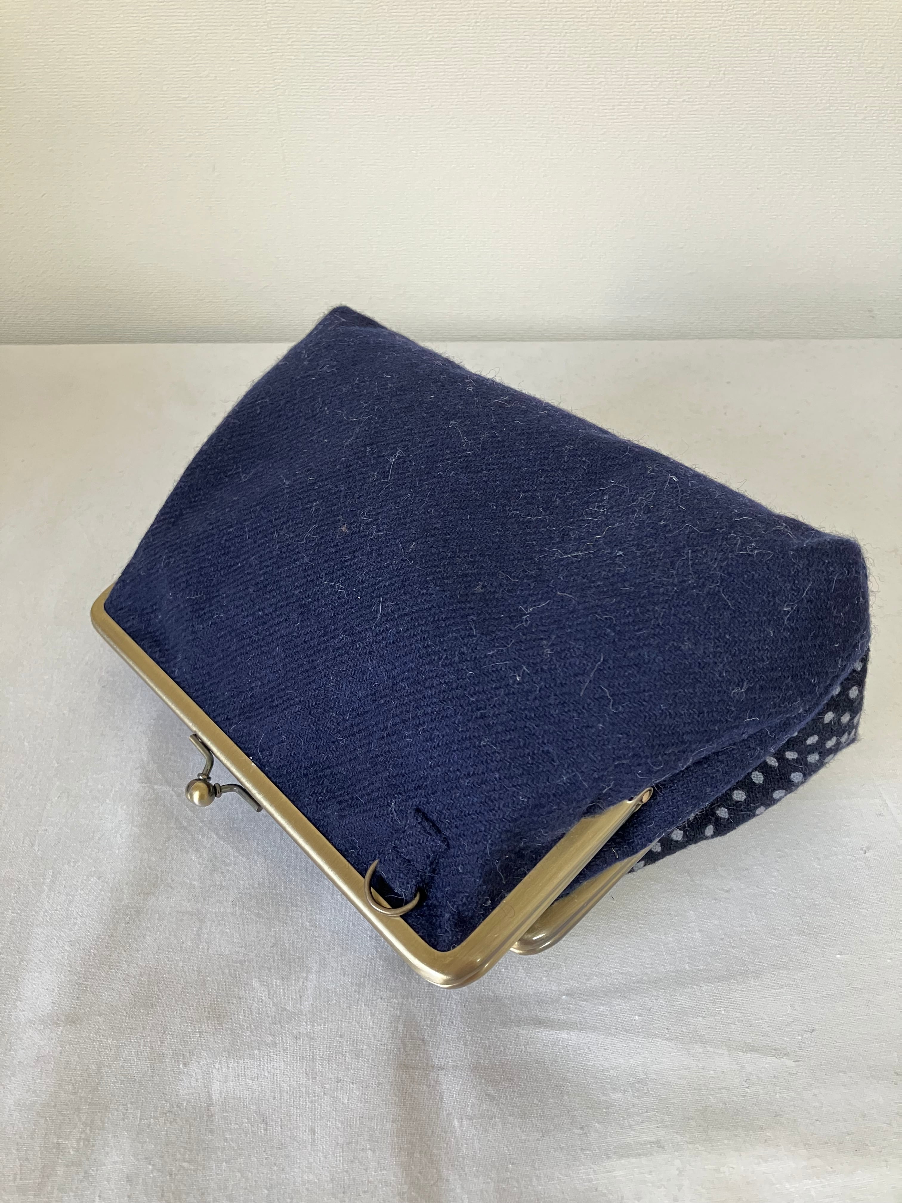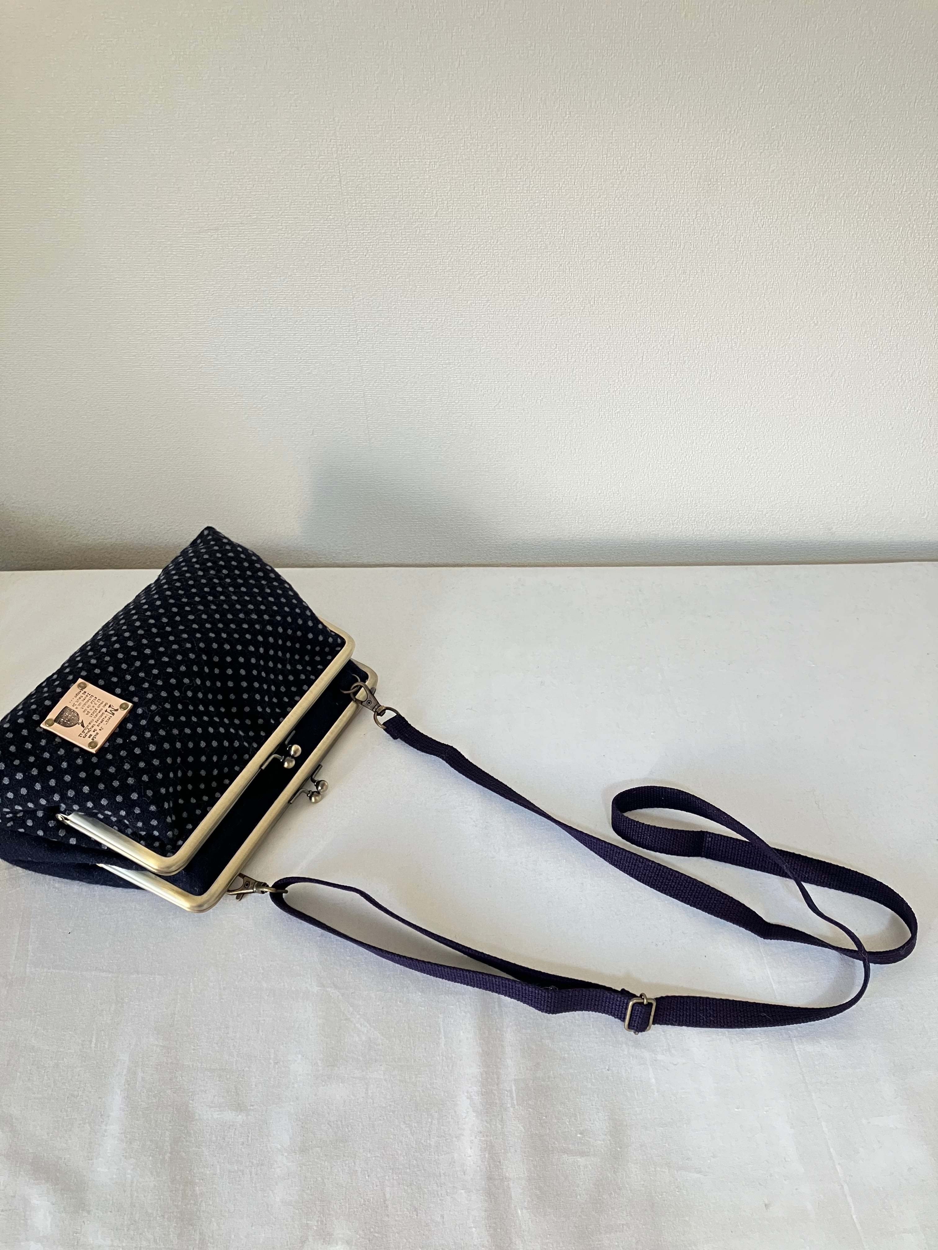 ダブルがま口バッグMサイズ(ネイビードット) 持ち手別売り
