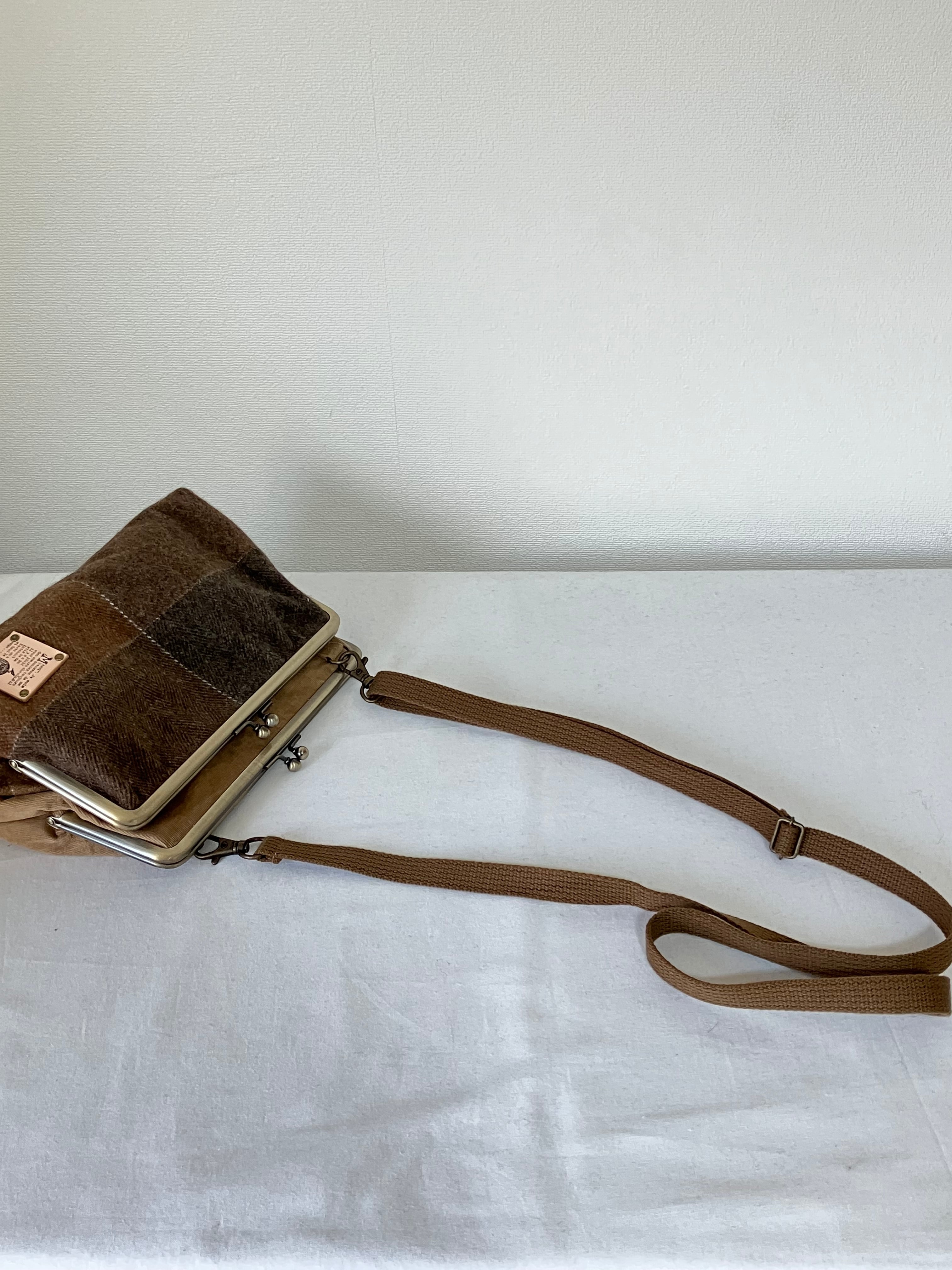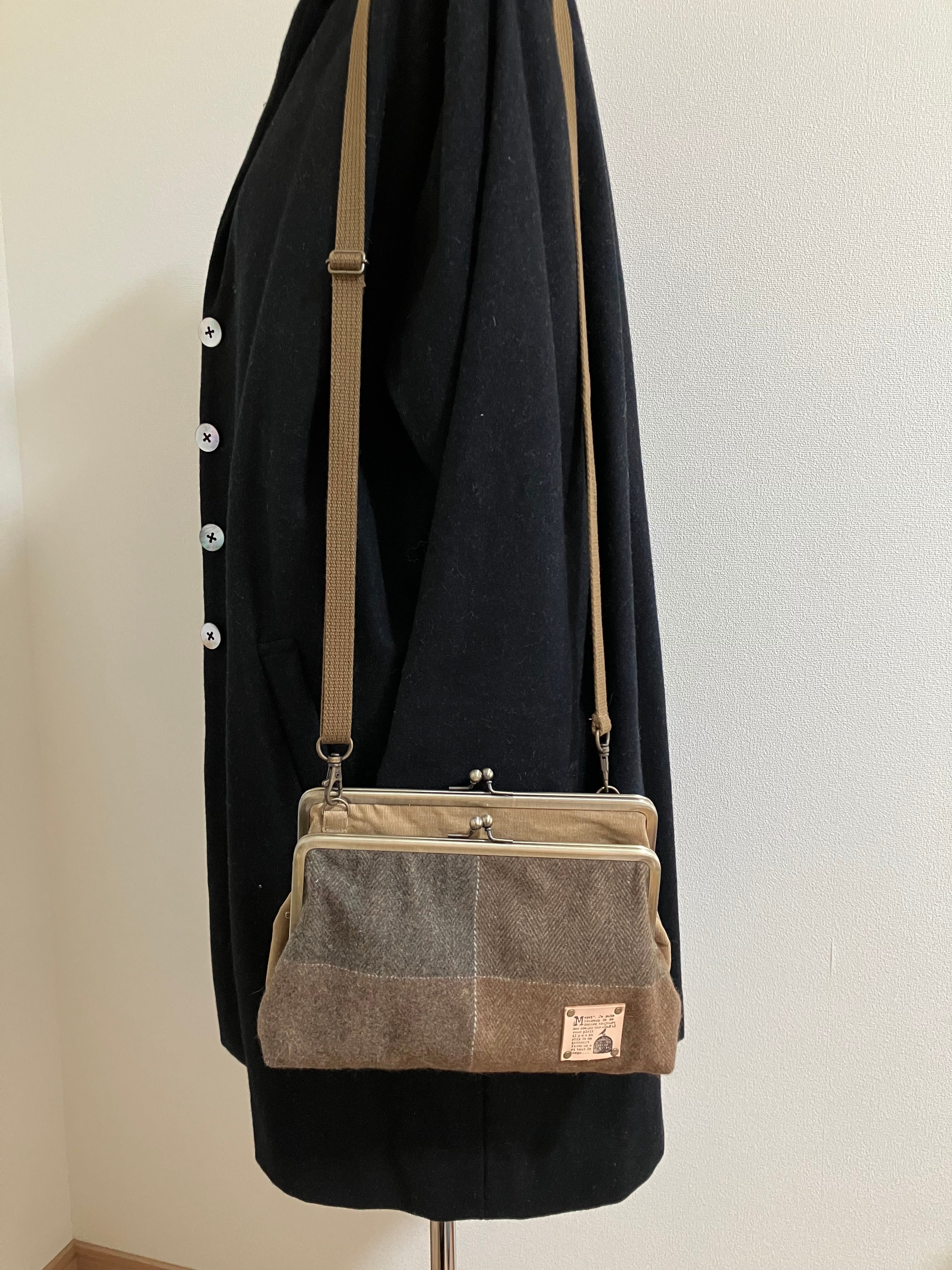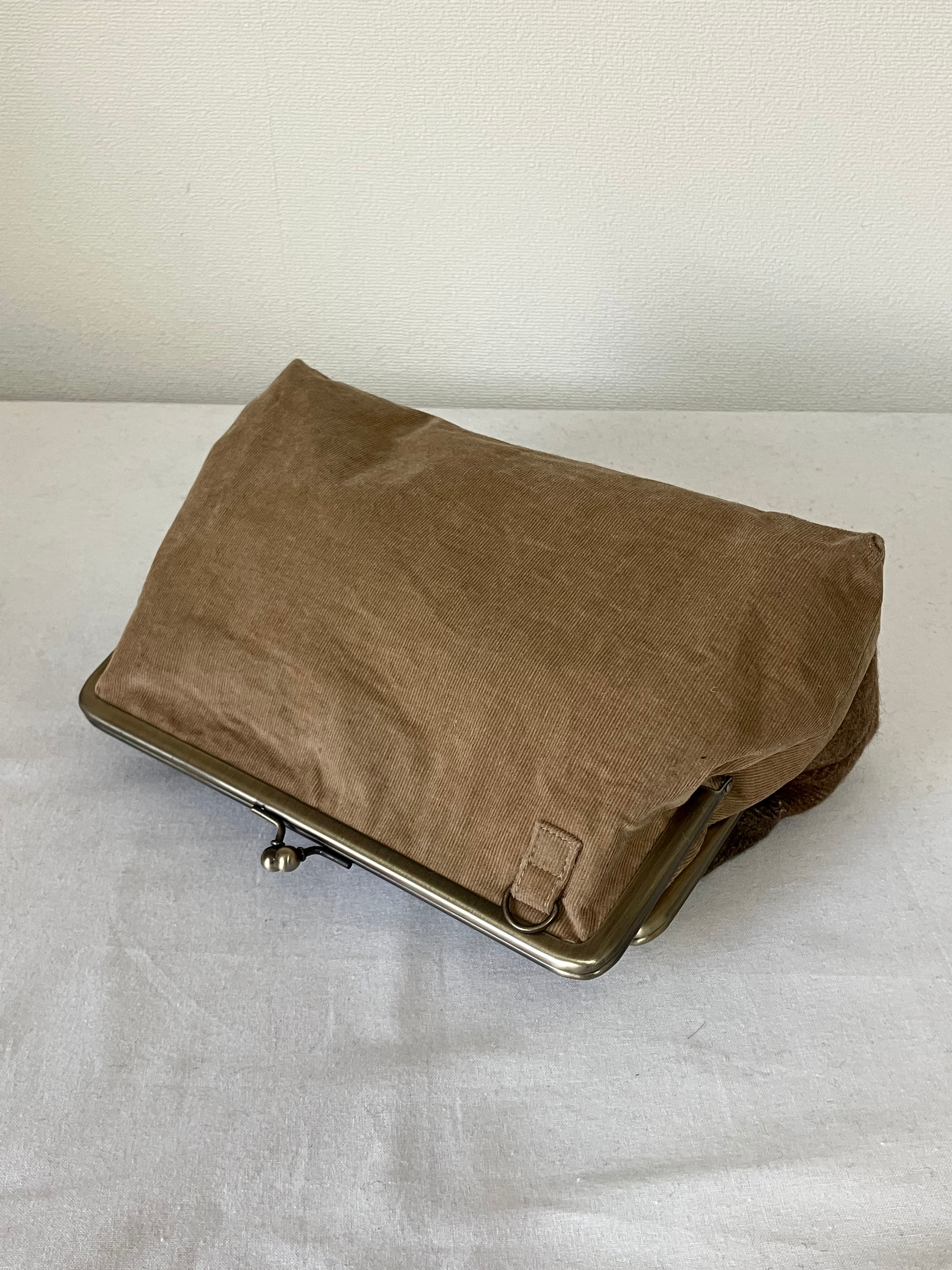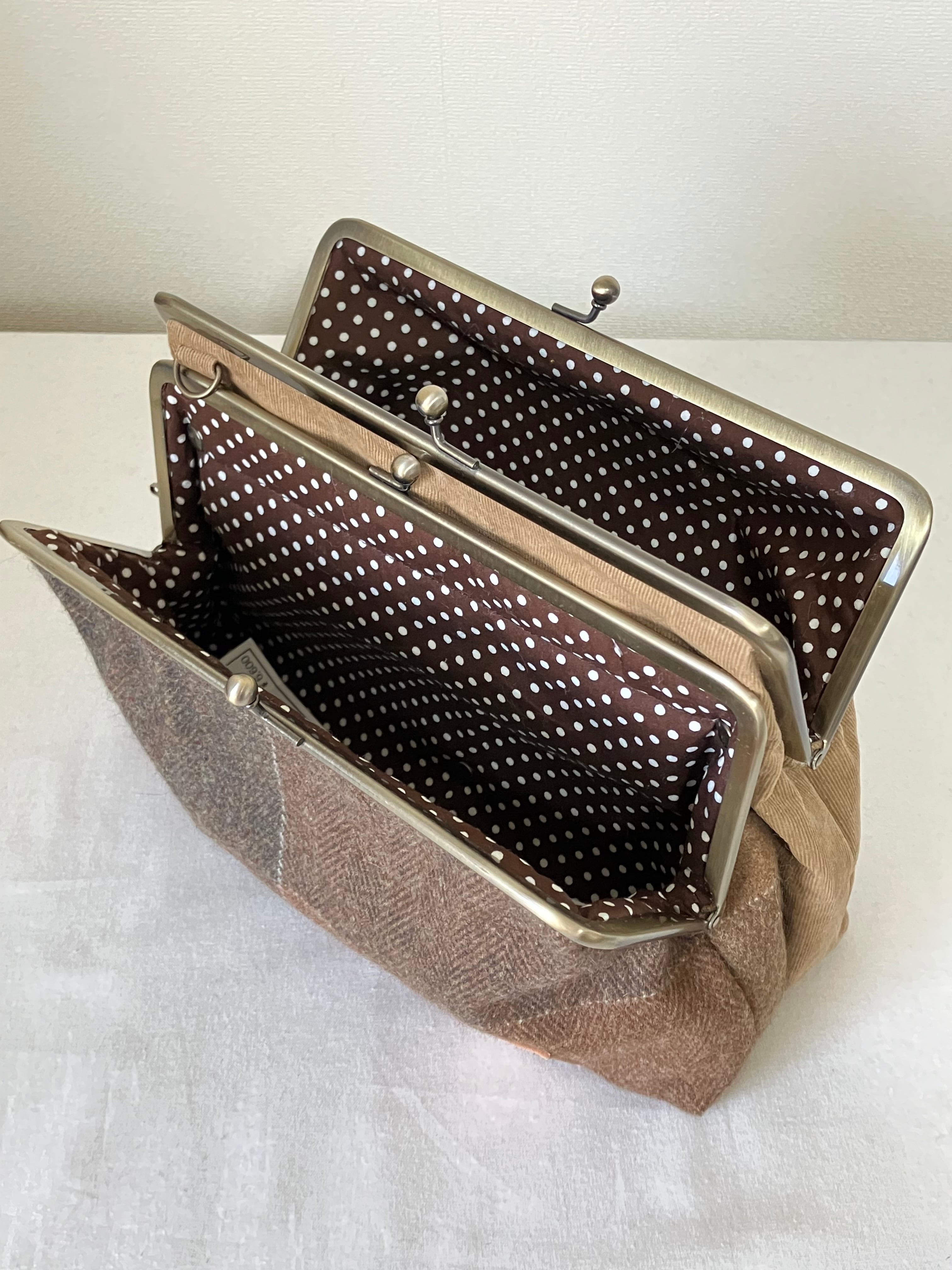 ダブルがま口バッグMサイズ(キャメルブラウン系) 持ち手別売り