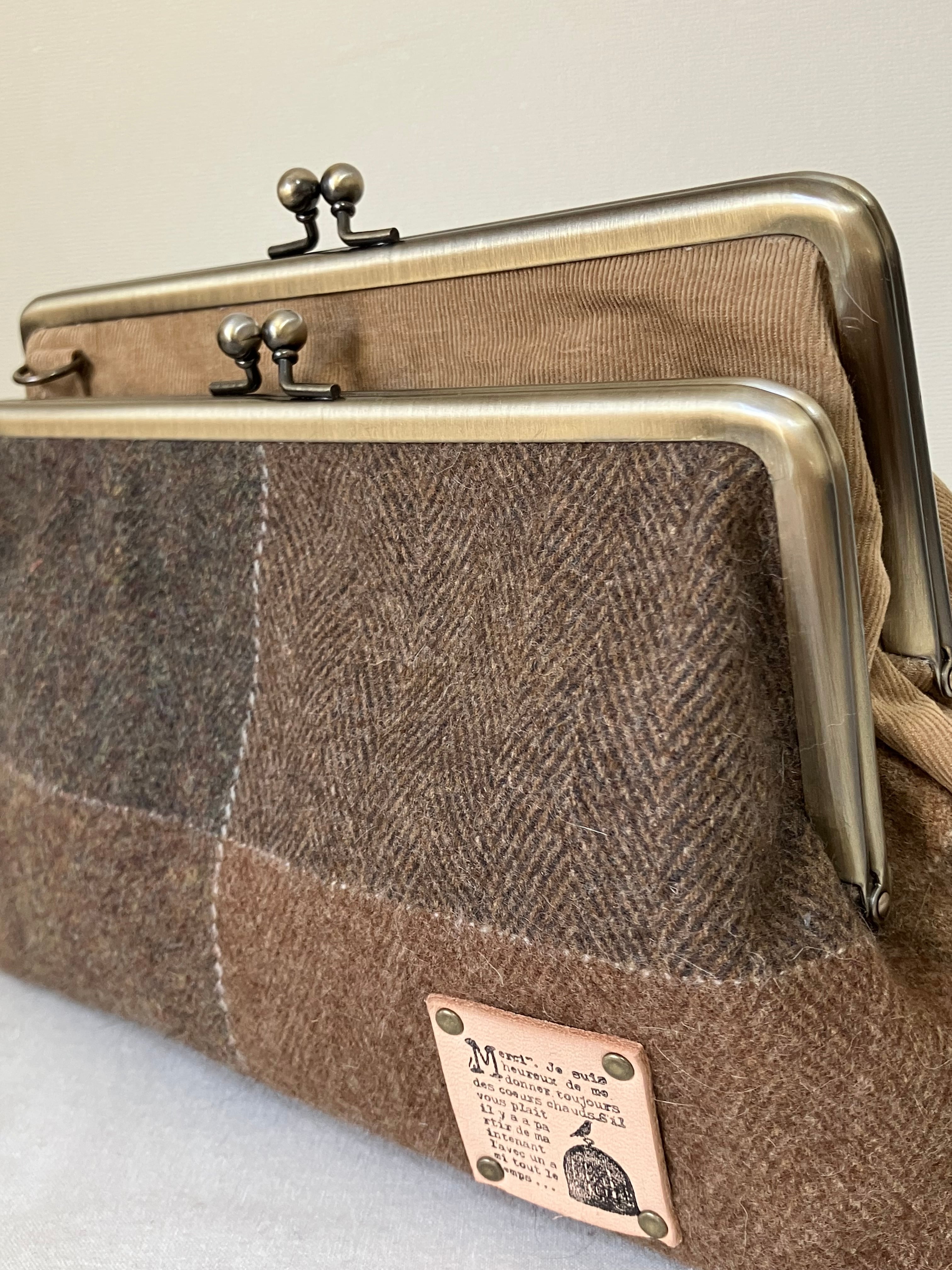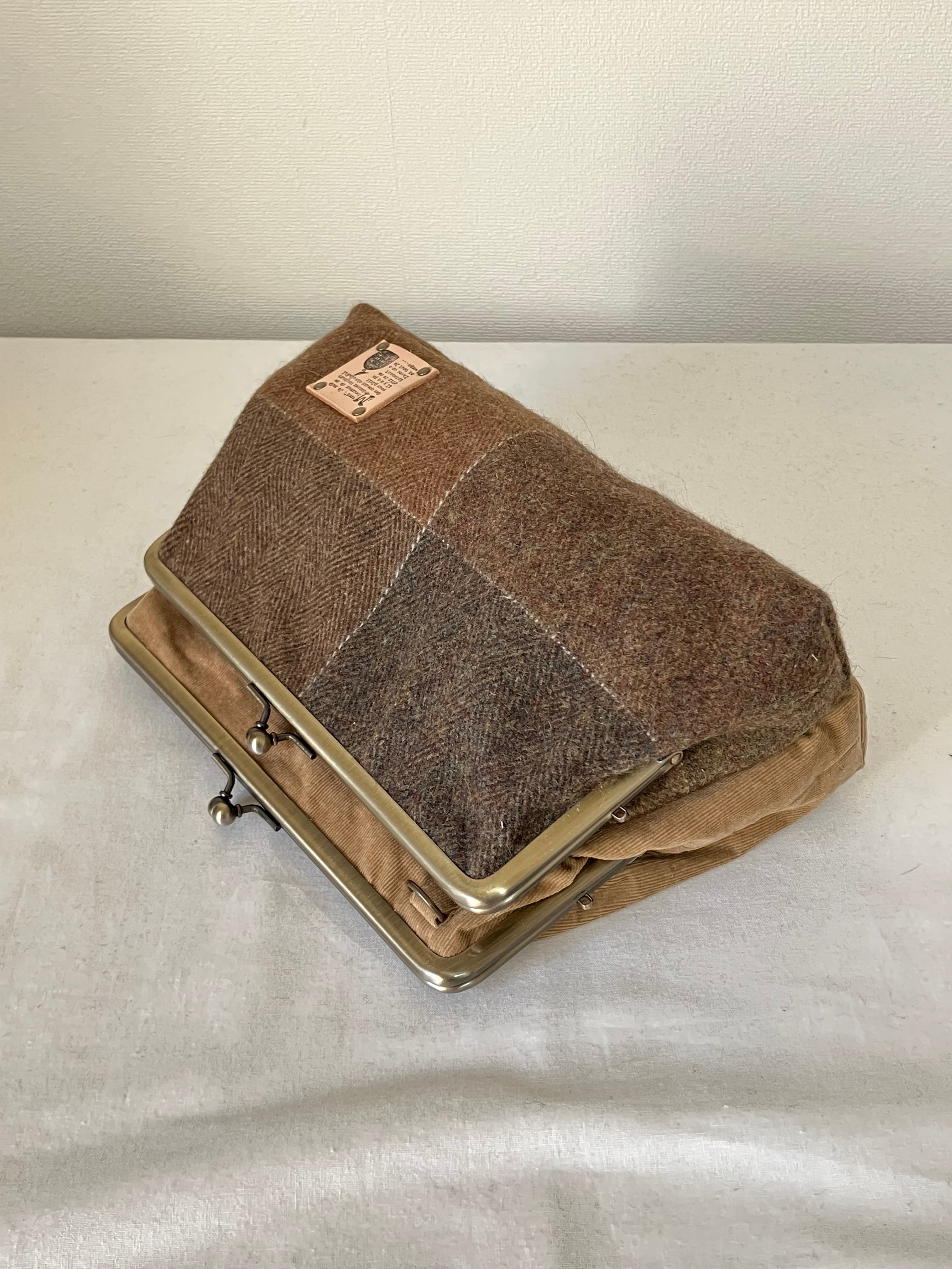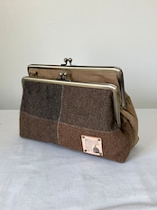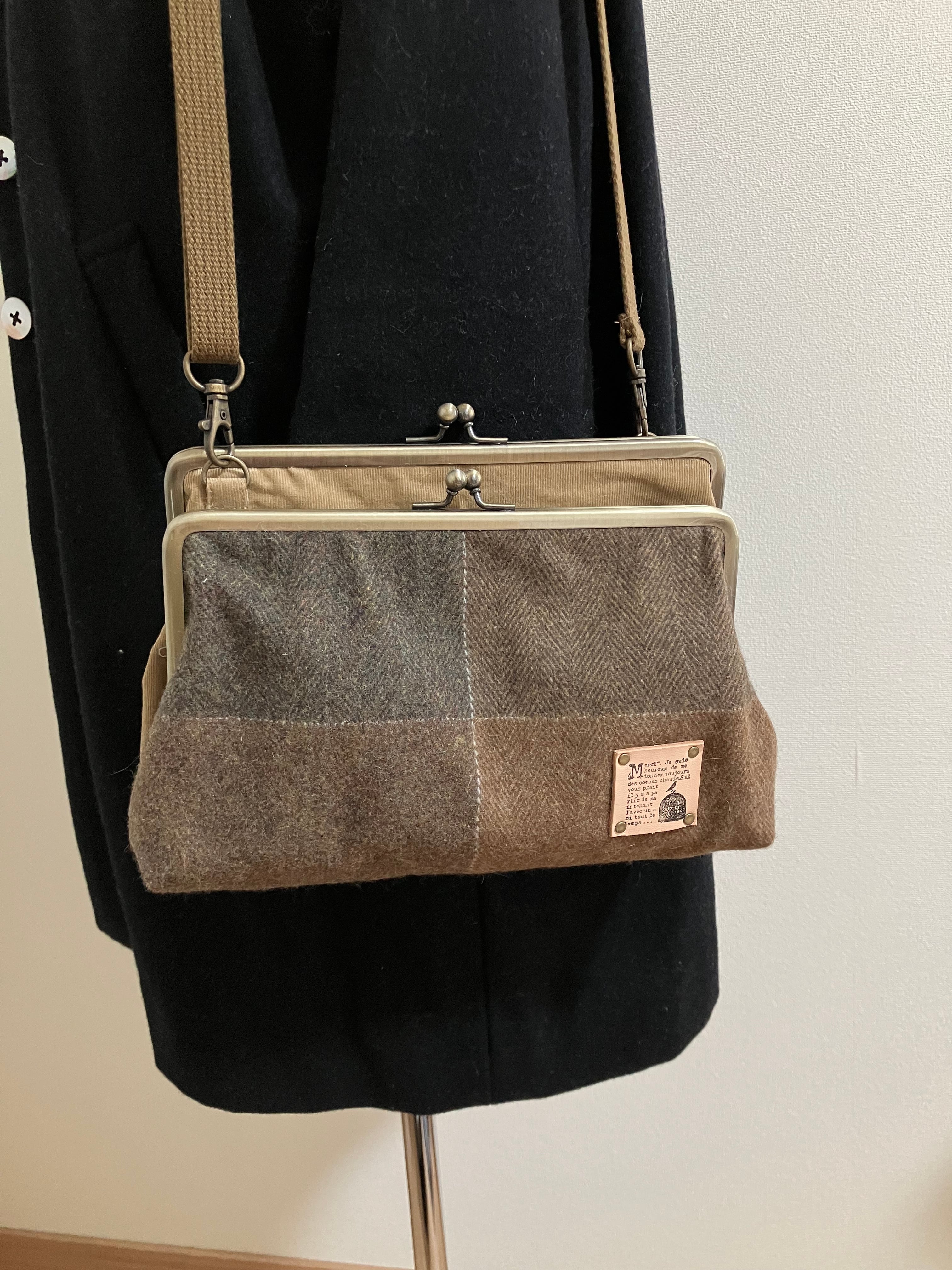 ダブルがま口バッグMサイズ(キャメルブラウン系) 持ち手別売り