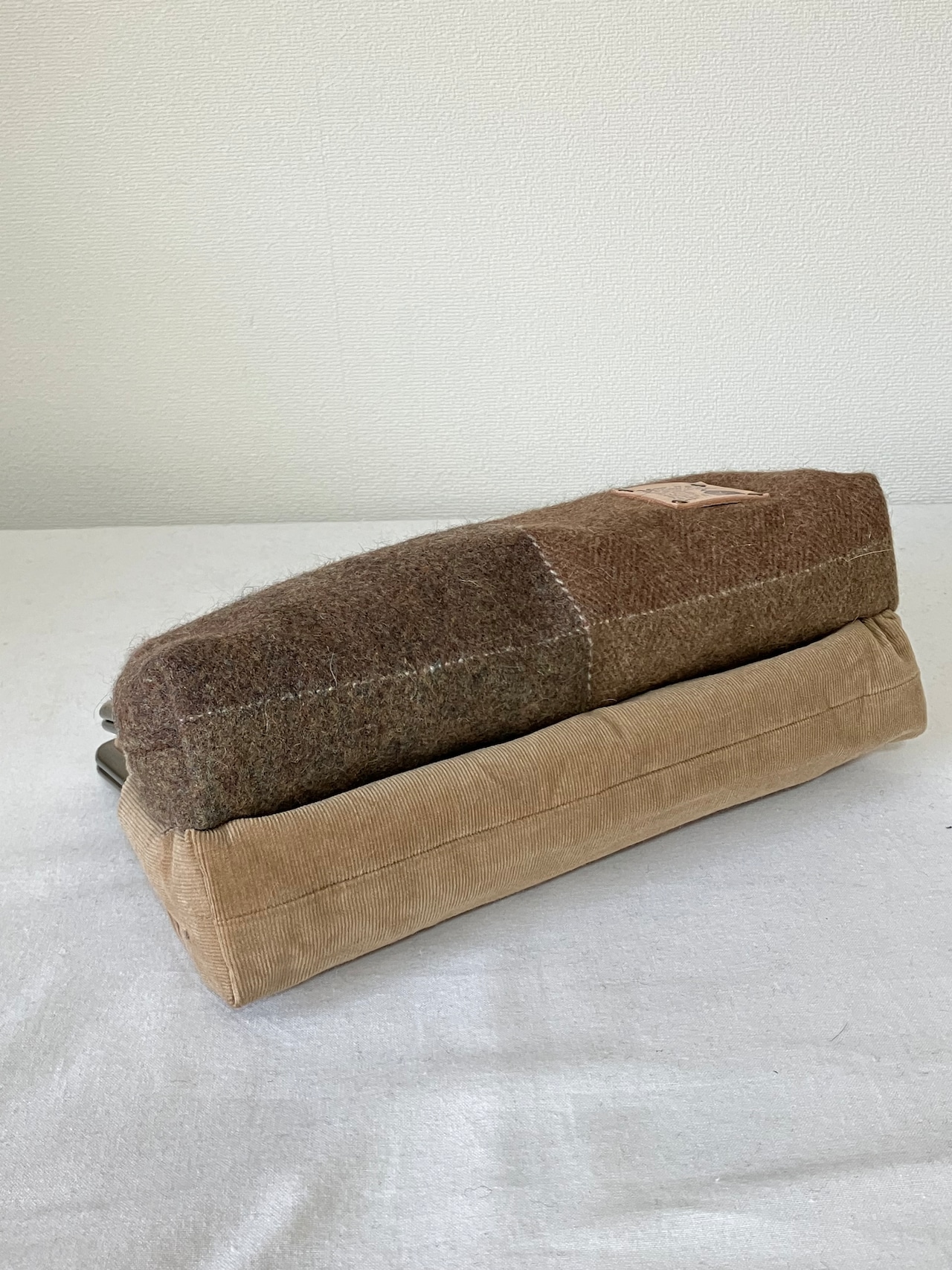 ■ キャメルブラウン系のトーンの異なった大きなブロックカラーのウール生地にベージュのコーデュロイを合わせました。