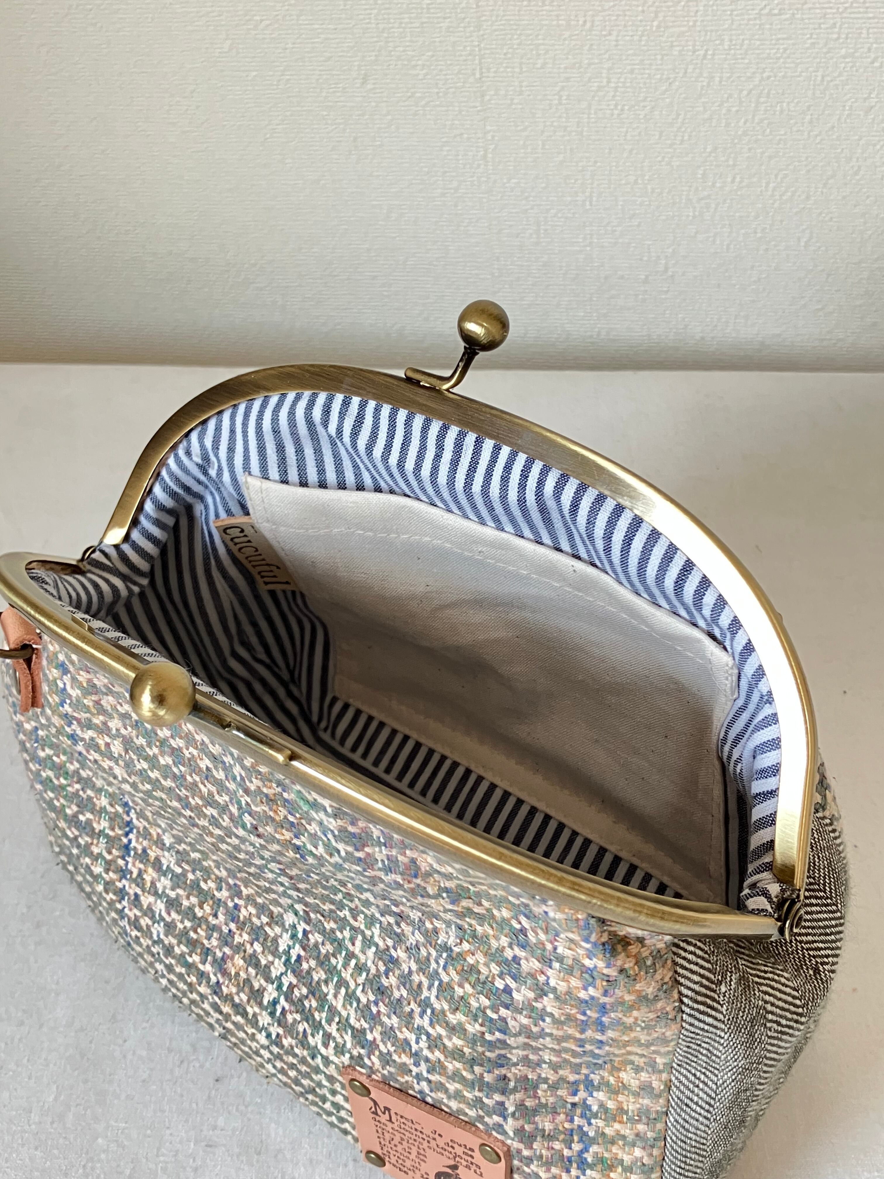 ■丸型の定番の形のがま口バッグのSサイズです。