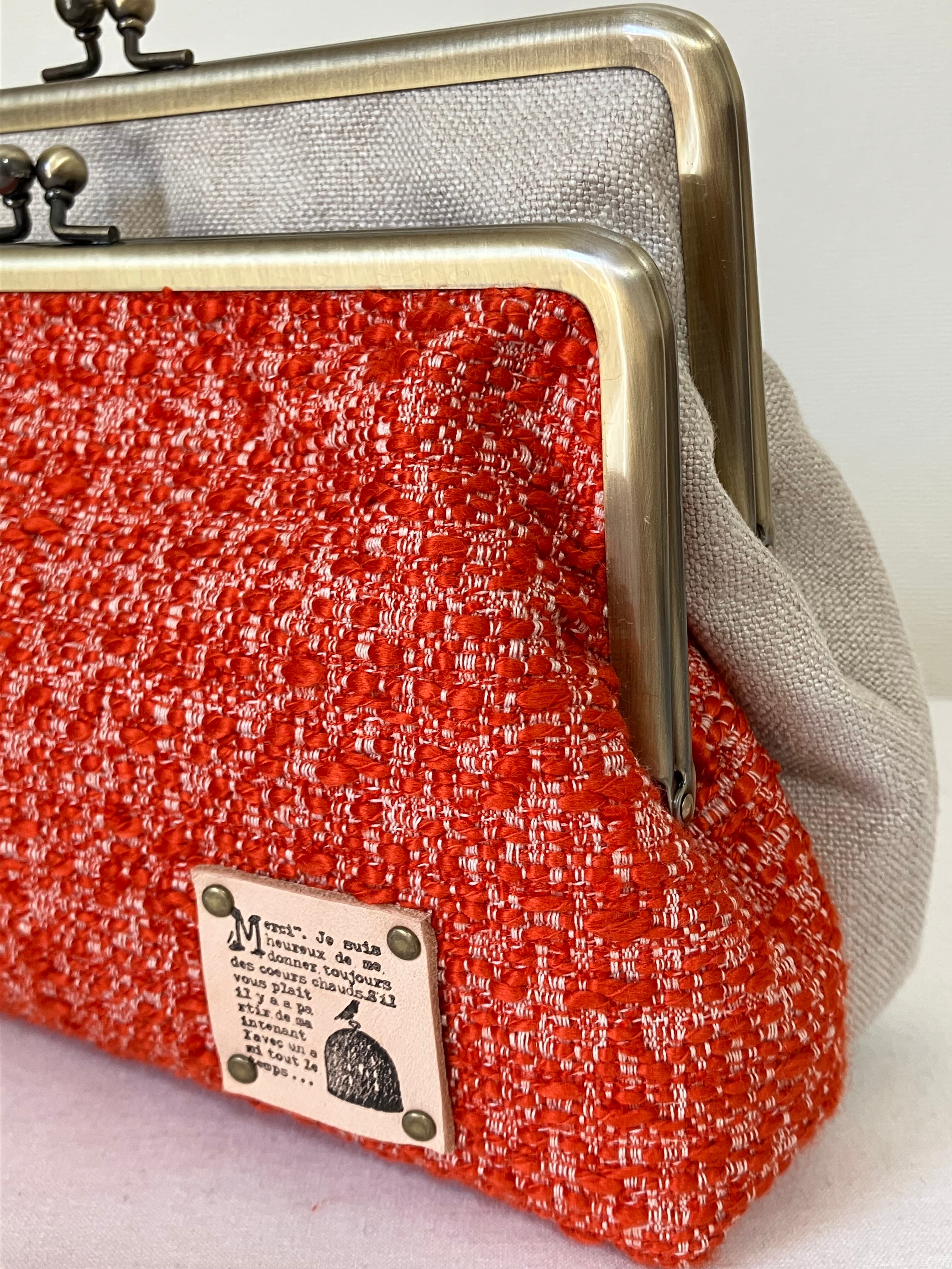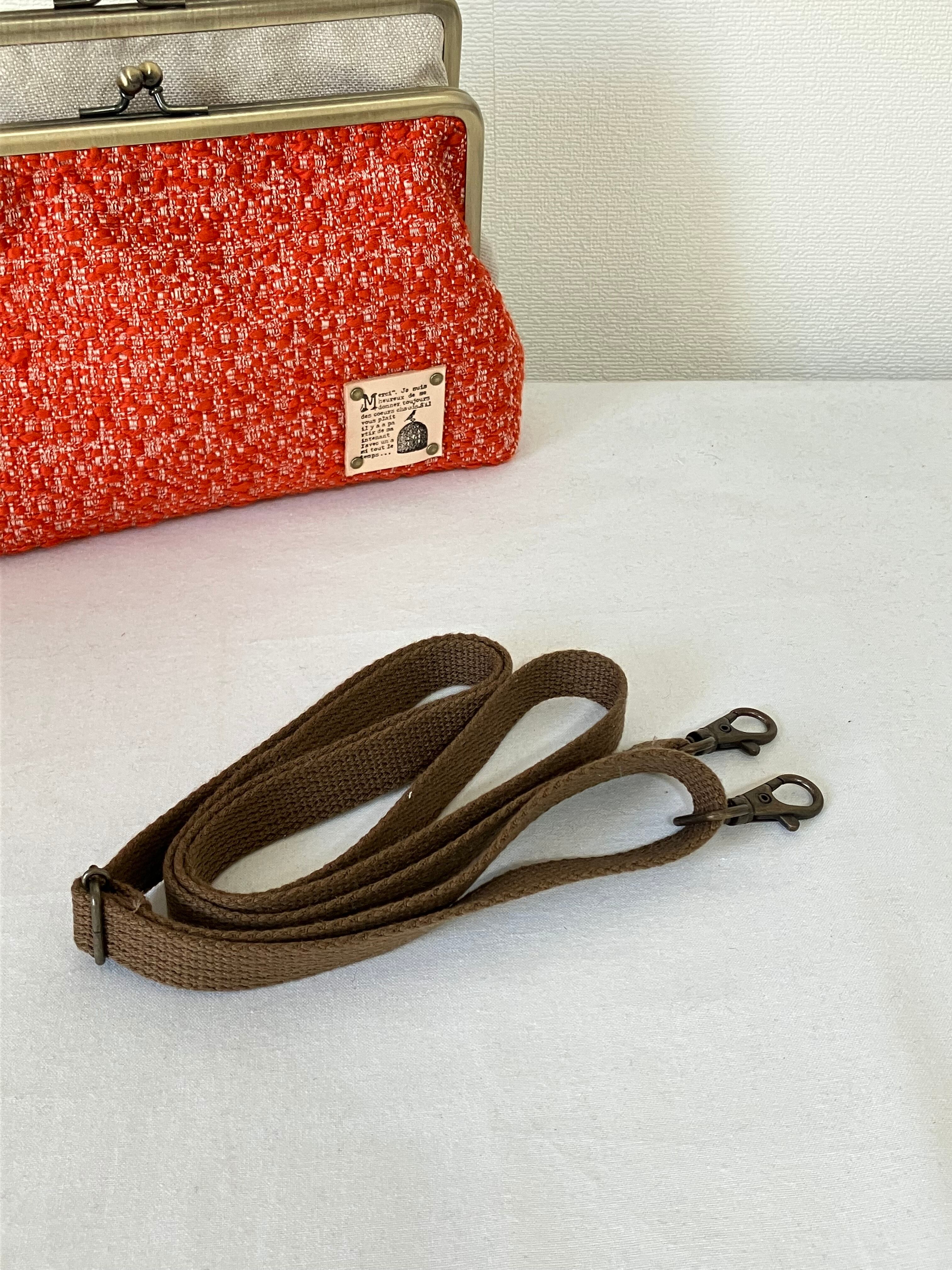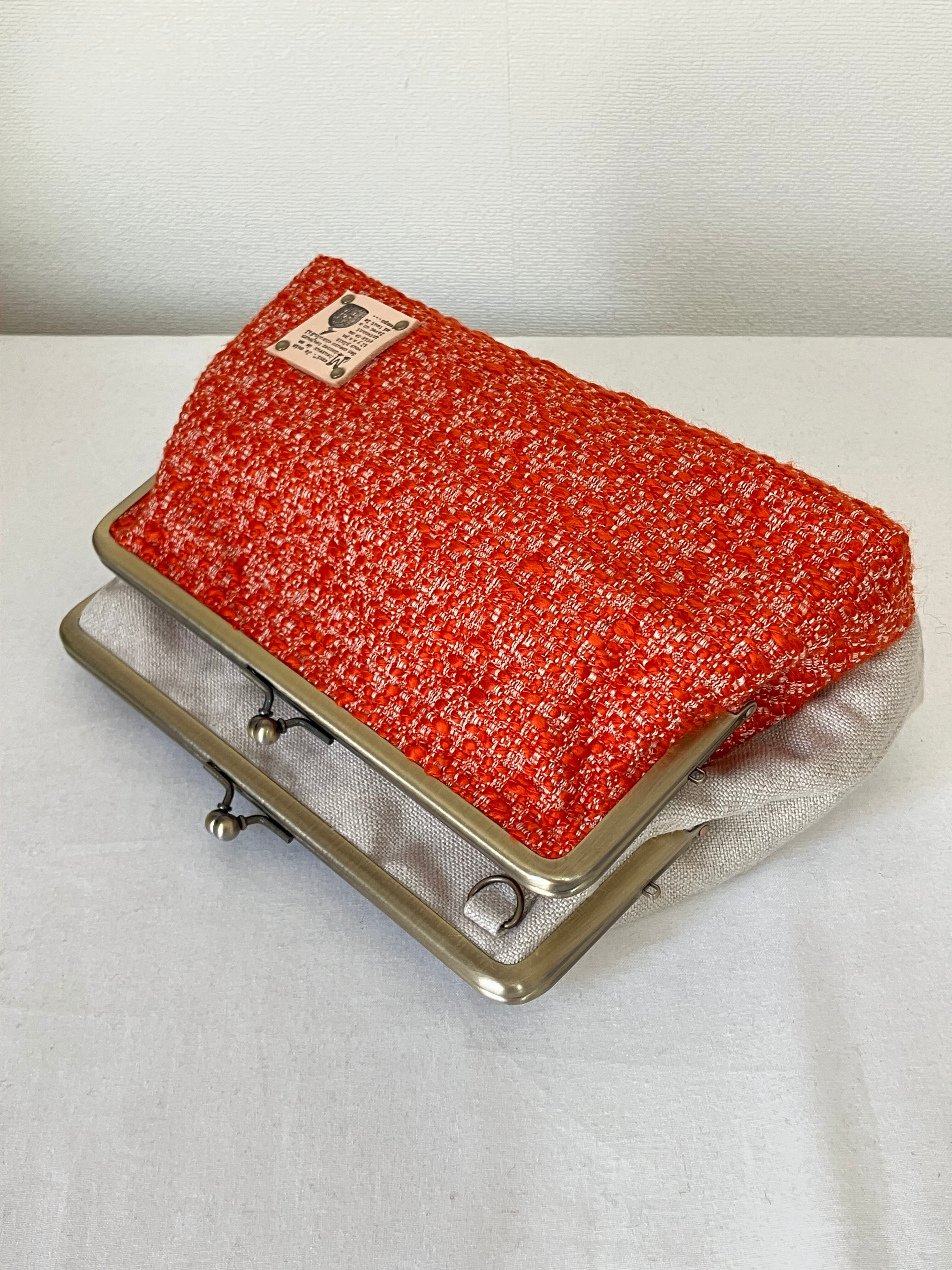 ダブルがま口バッグMサイズ(オレンジツイード) 持ち手別売り