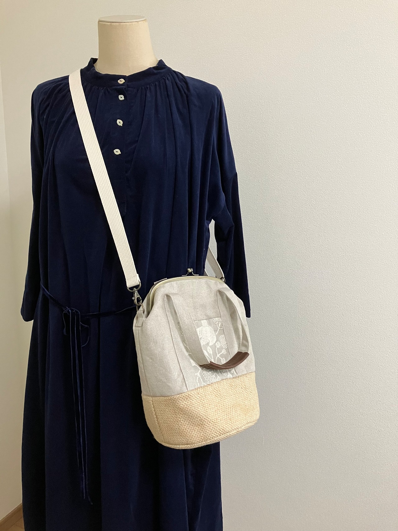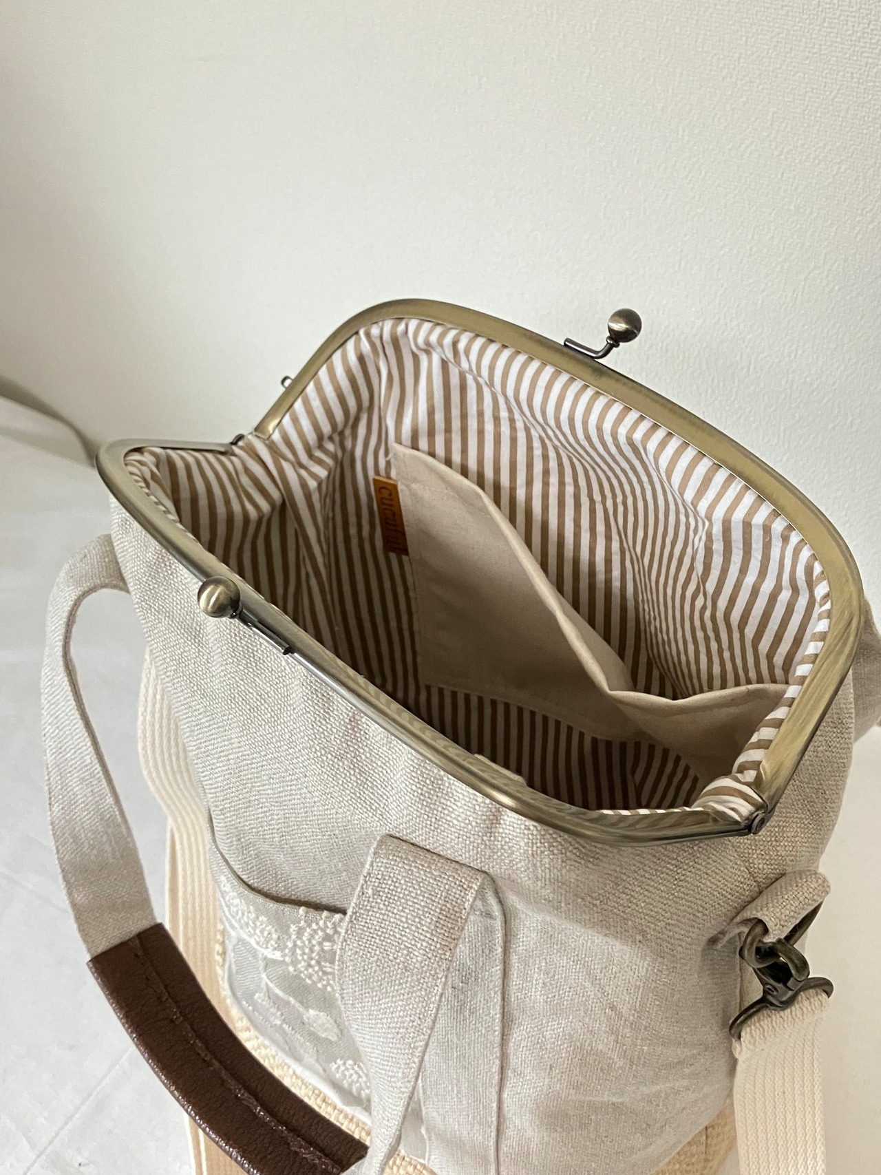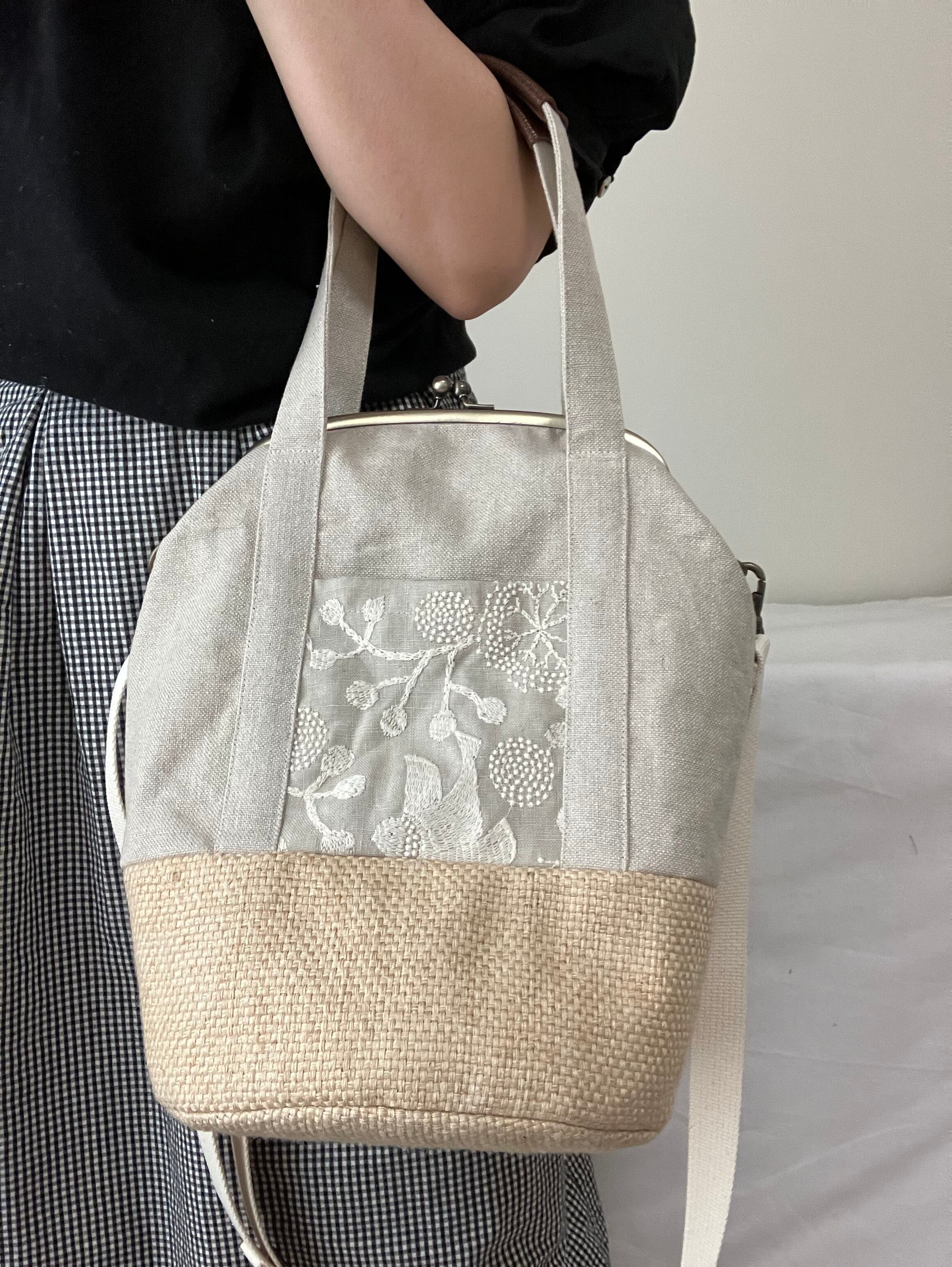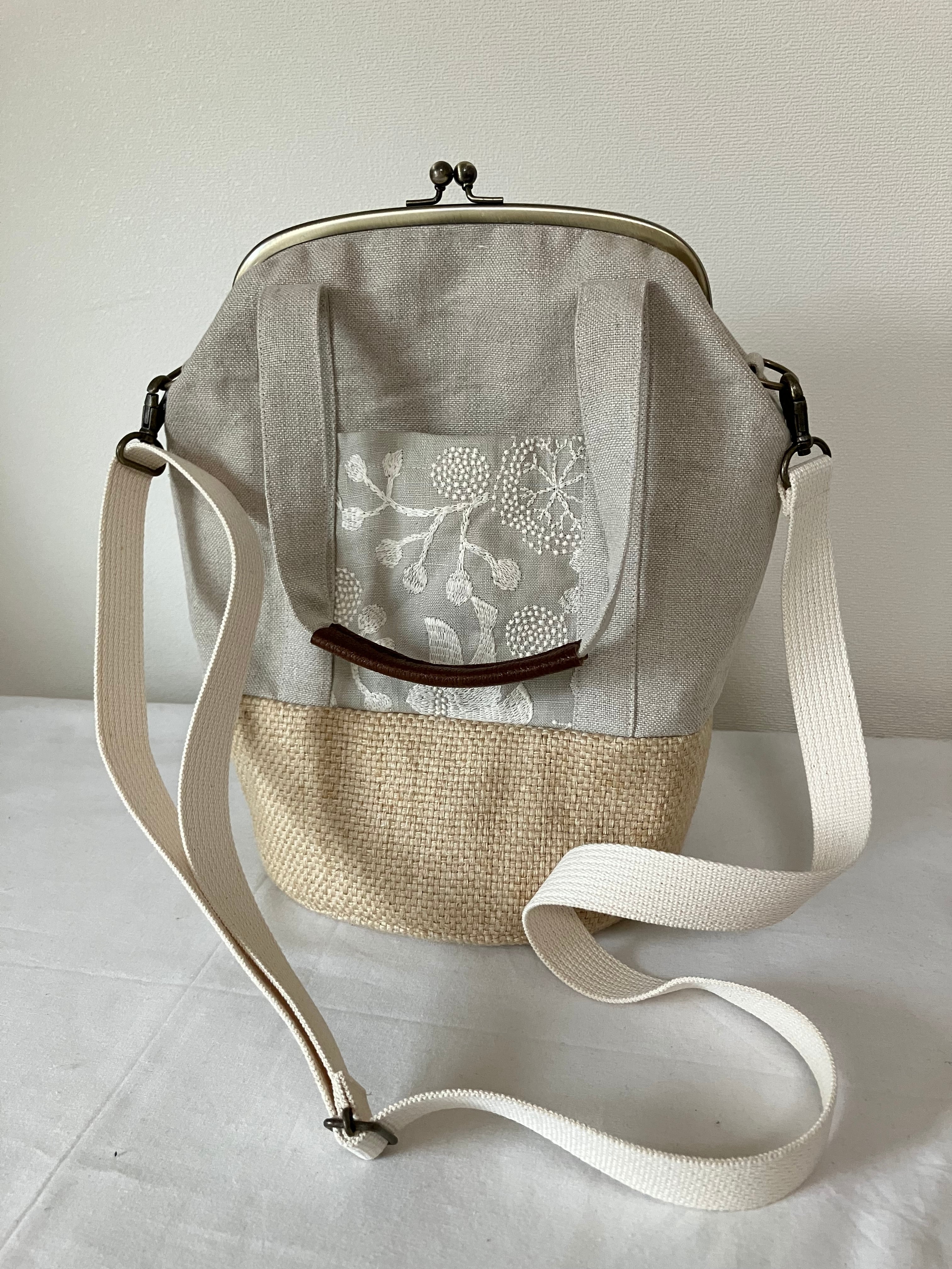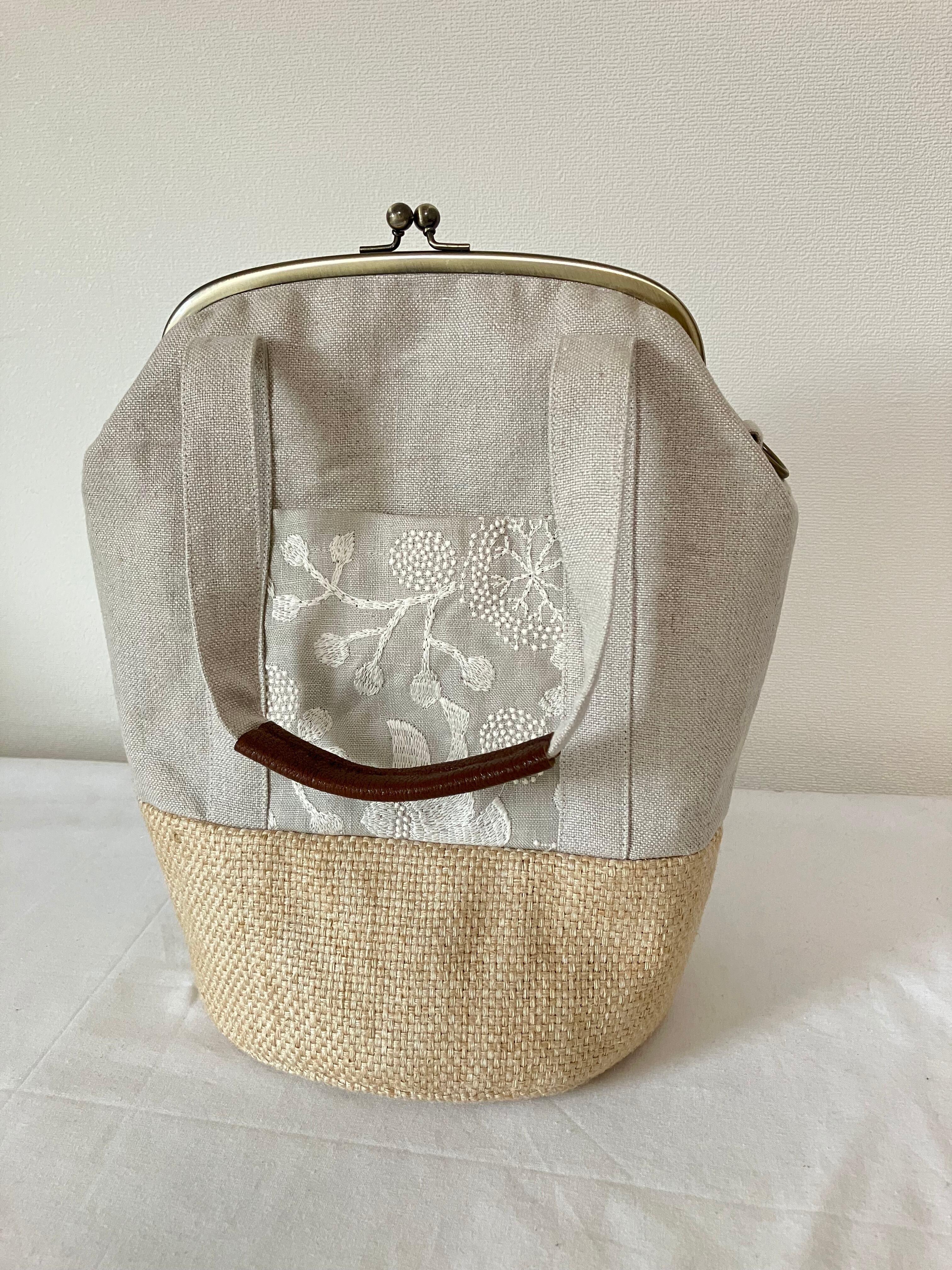 2way summerがま口バッグ(リネン×刺繍)