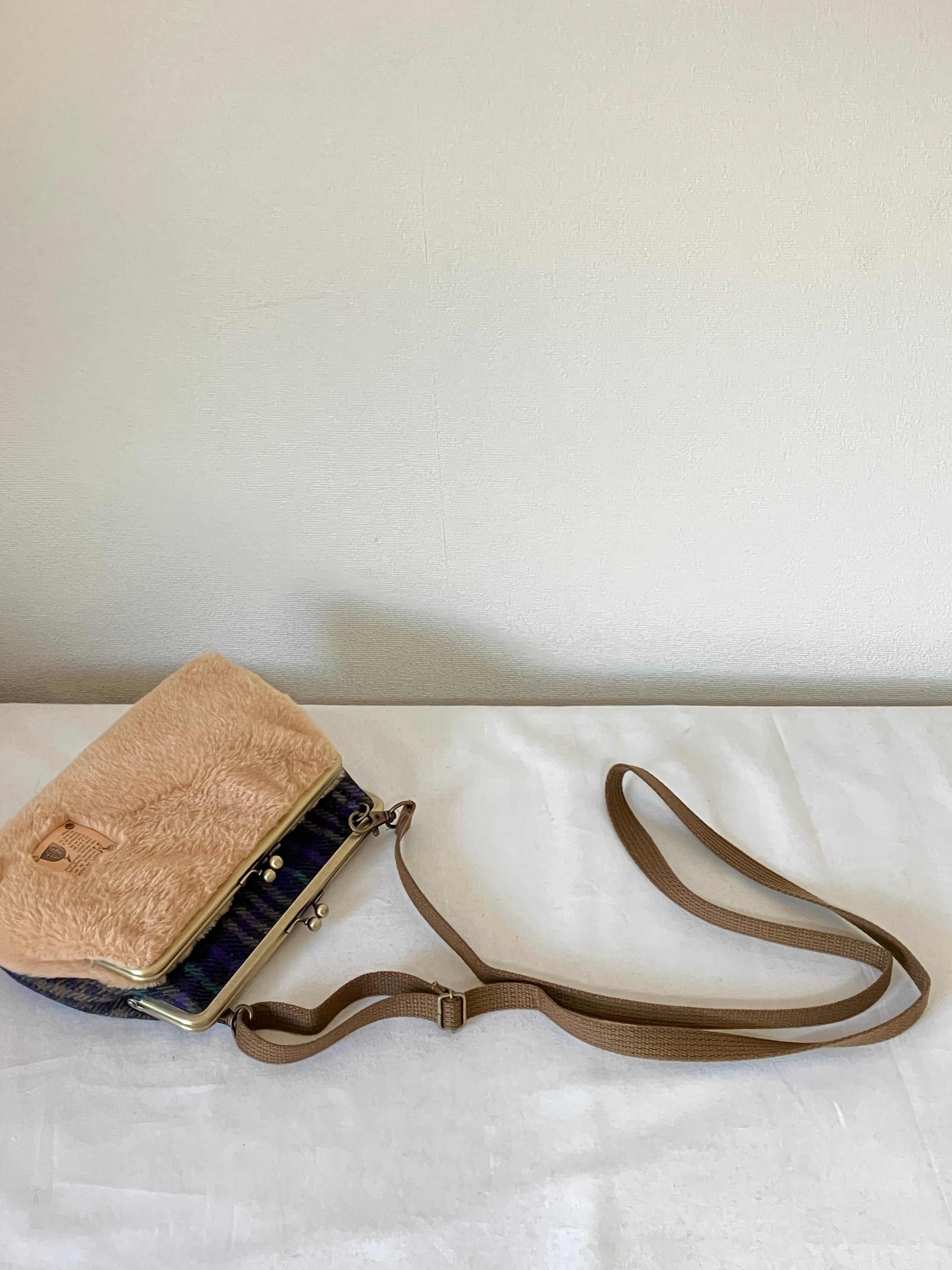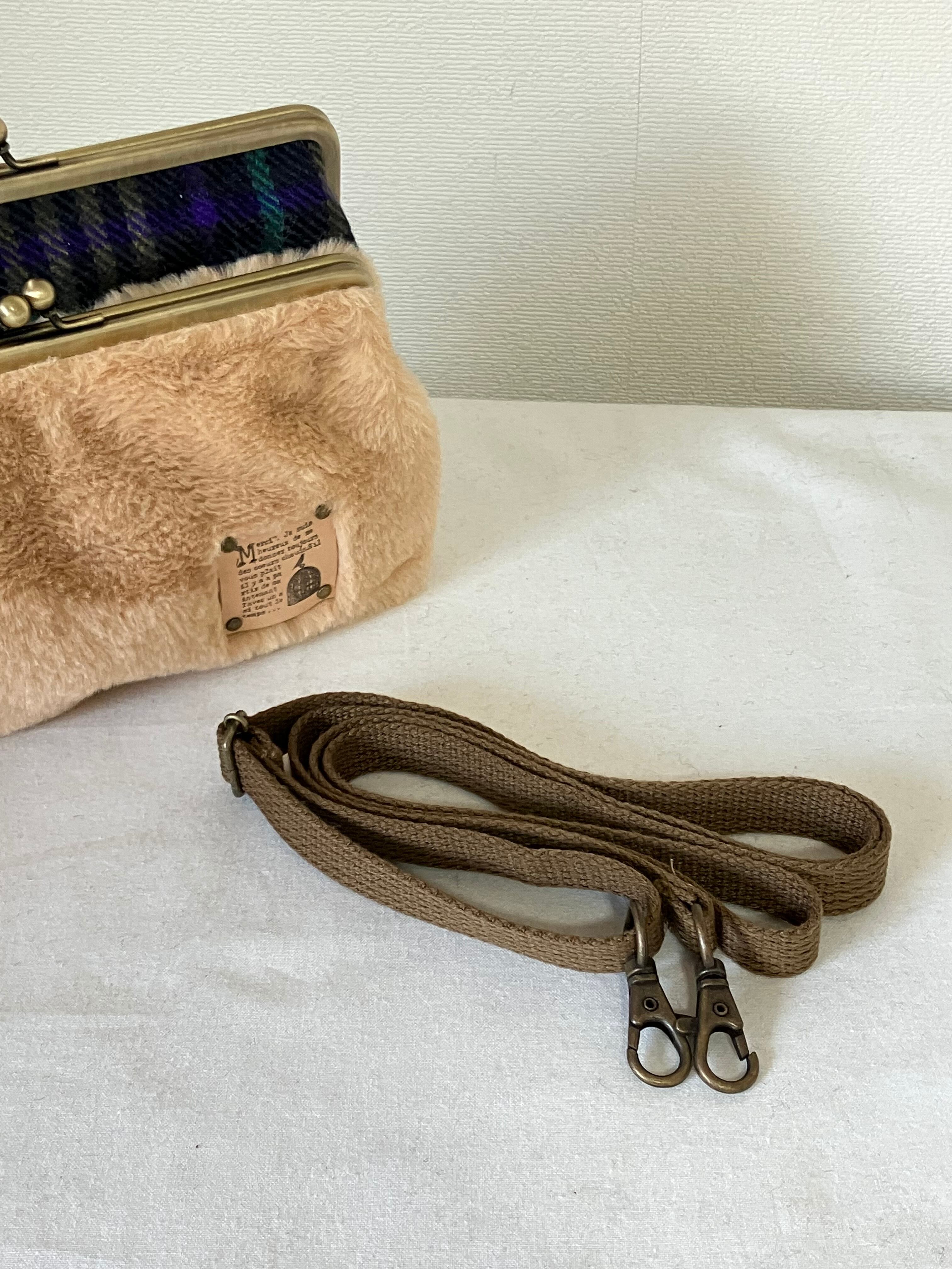 ダブルがま口バッグSサイズ(ベージュファー) 持ち手別売り